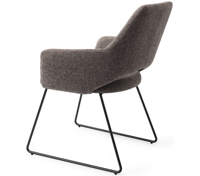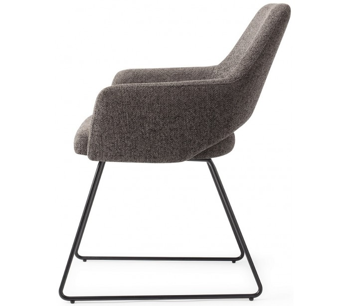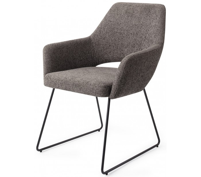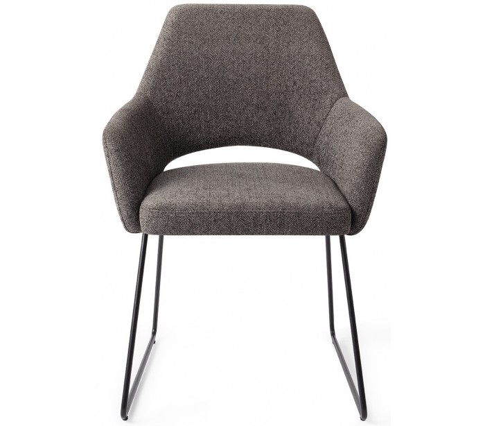 Sæt med 2 Yanai spisebordsstole i et moderne design, fremstillet med sæde i mørkegrå polyester og stel i sortlakeret metal. Stolen måler 83,5 cm i højden over ryggen og med siddehøjde på 48 cm.