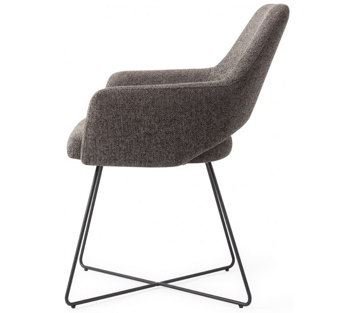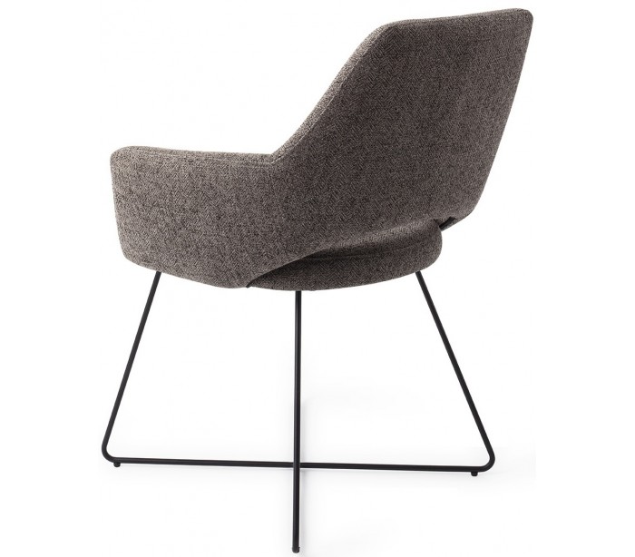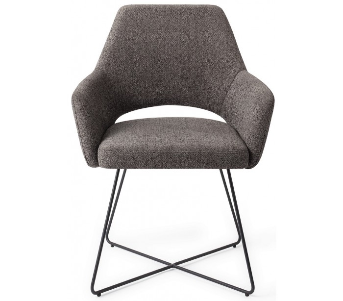Sæt med 2 Yanai spisebordsstole i et moderne design, fremstillet med sæde i mørkegrå polyester og stel i sortlakeret metal. Stolen måler 85 cm i højden over ryggen og med siddehøjde på 48 cm.