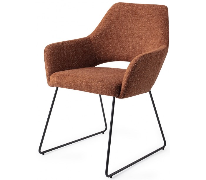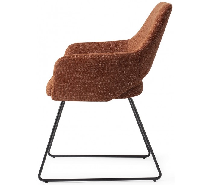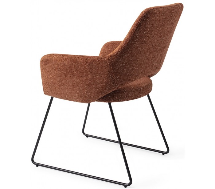 Sæt med 2 Yanai spisebordsstole i et moderne design, fremstillet med sæde i terracotta polyester og stel i sortlakeret metal. Stolen måler 83,5 cm i højden over ryggen og med siddehøjde på 48 cm.