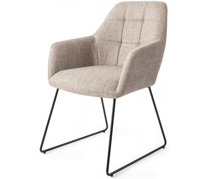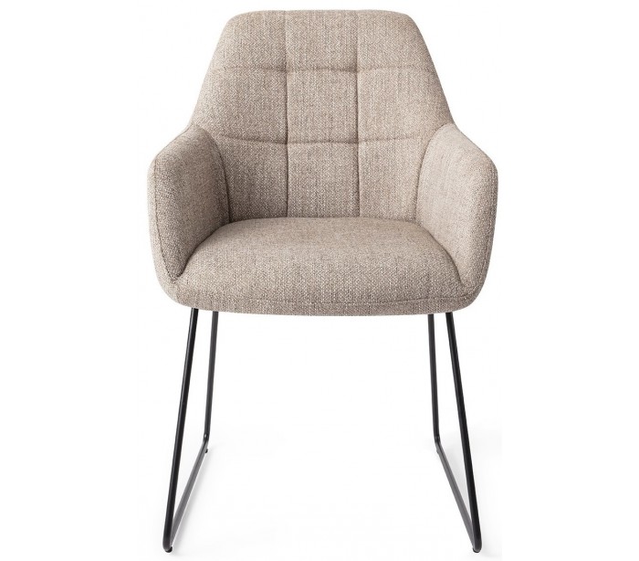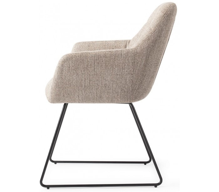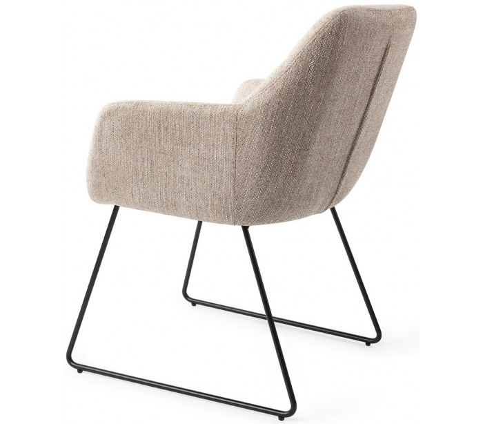 Sæt med 2 Noto spisebordsstole i et moderne design, fremstillet med sæde i sandgrå polyester og stel i sortlakeret metal. Stolen måler 84,5 cm i højden over ryggen og med siddehøjde på 48 cm.