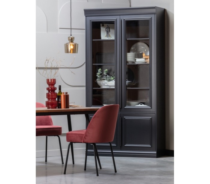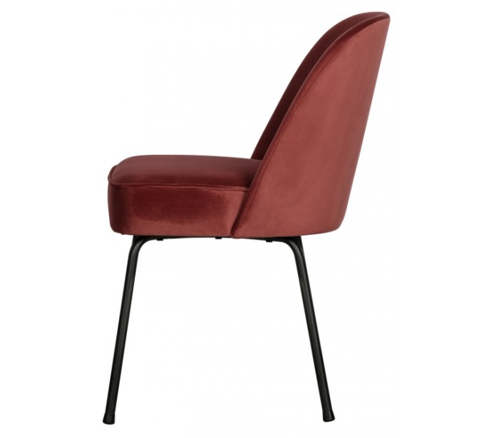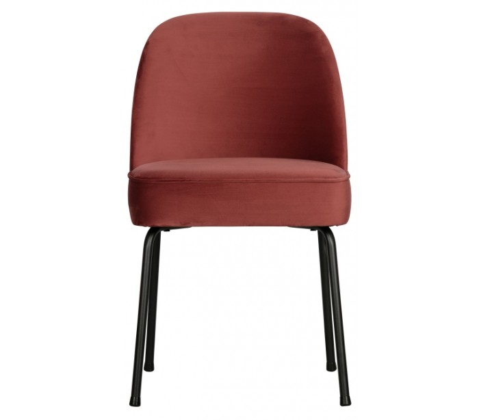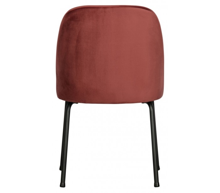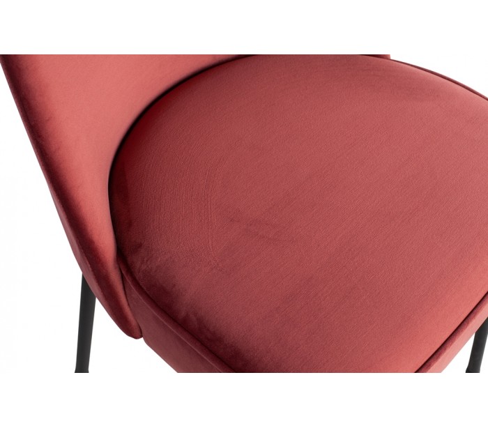 Spisebordsstol i et moderne design, fremstillet i kastanjefarvet velour, og med ben i sortlakeret metal. Stolen måler 82,5 cm i højden og 50 x 57 cm i bredde og dybde. Siddehøjden er 50 cm.
