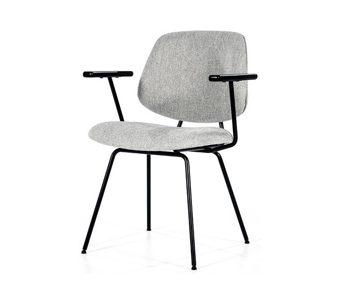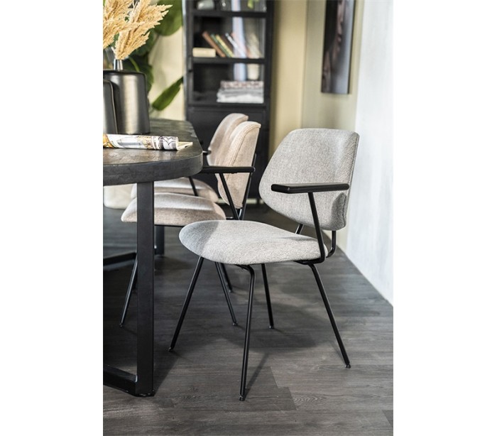Spisebordsstol med armlæn, fremstillet i et design med stel i sortlakeret metal og sæde samt ryg i polyester. En komfortabel spisebordsstol der vil passe ind i både den moderne, såvel som i den klassiske indretning. Stolen måler 82 cm over ryggen.
