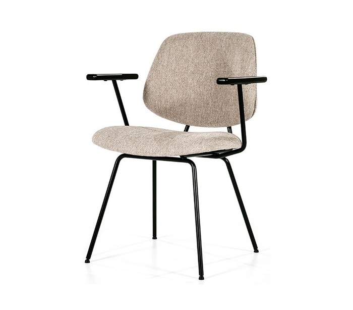 Spisebordsstol med armlæn, fremstillet i et design med stel i sortlakeret metal og sæde samt ryg i polyester. En komfortabel spisebordsstol der vil passe ind i både den moderne, såvel som i den klassiske indretning. Stolen måler 82 cm over ryggen.