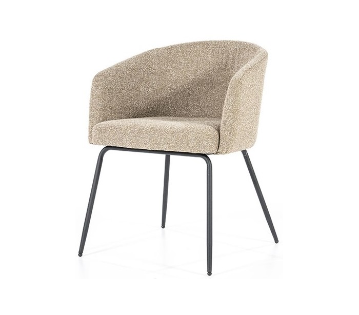 Spisebordsstol med armlæn, fremstillet i et design med stel i sortlakeret metal og sæde samt ryg i polyester. En komfortabel spisebordsstol der vil passe ind i både den moderne, såvel som i den klassiske indretning. Stolen måler 77 cm over ryggen.