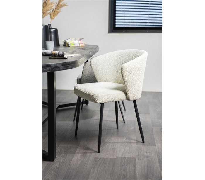 Spisebordsstol med armlæn, fremstillet i et design med stel i sortlakeret metal og sæde samt ryg i polyester. En komfortabel spisebordsstol der vil passe ind i både den moderne, såvel som i den klassiske indretning. Stolen måler 79,5 cm over ryggen.