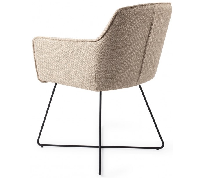 Sæt med 2 Hofu spisebordsstole i et moderne design, fremstillet med sæde i lys valnød polyester og stel i sortlakeret metal. Stolen måler 82 cm i højden over ryggen og med siddehøjde på 48,5 cm.