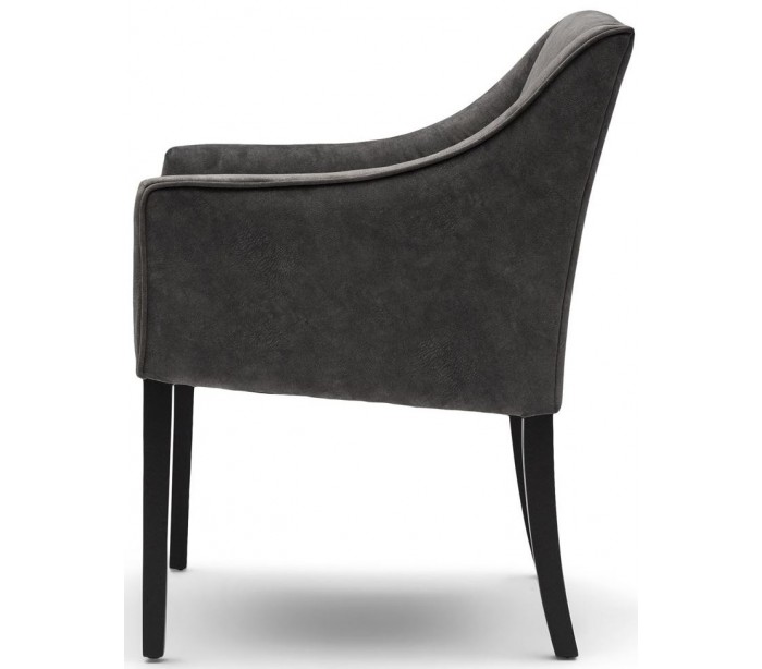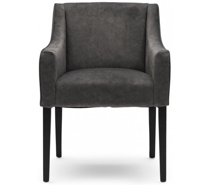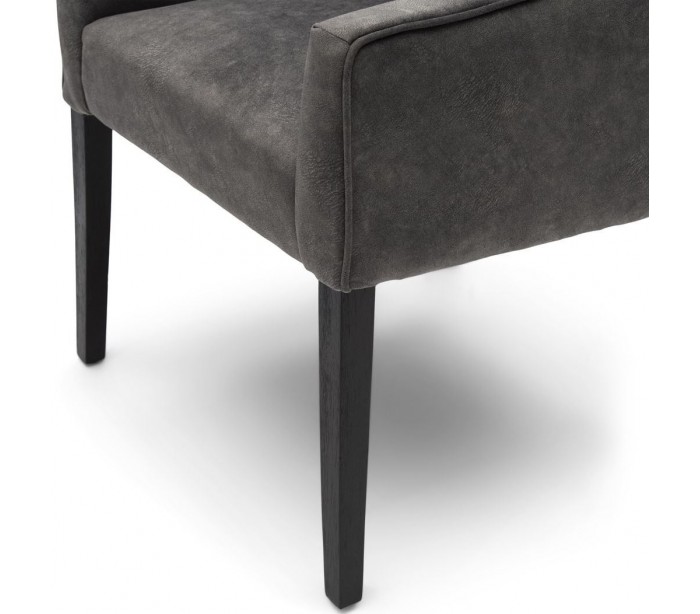 Riviera Maison spisebordsstol i et design af elefantgrå coated polyester og sortlakeret træ. Stolen måler 86 cm i højden over ryggen og 56 cm i bredden. Detajle med håndtag på bagside.