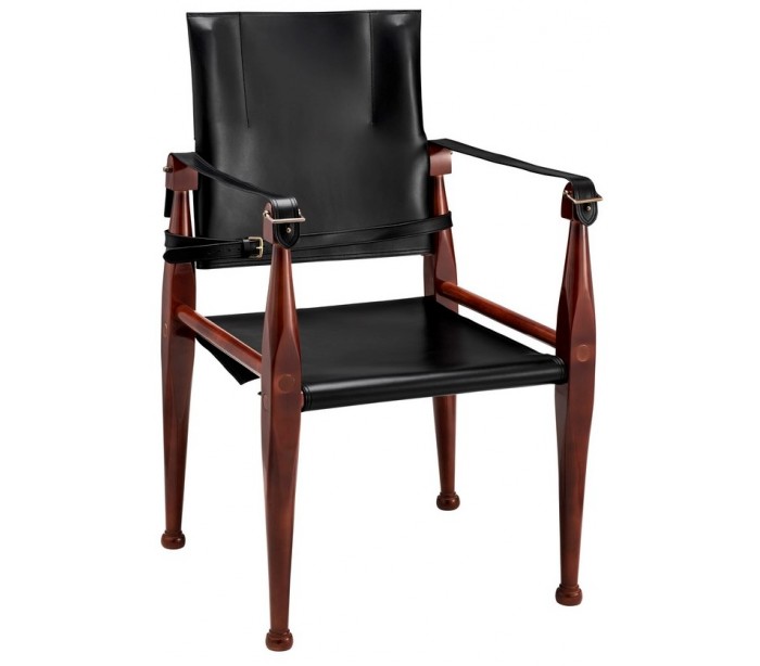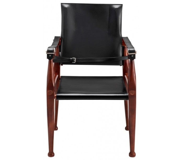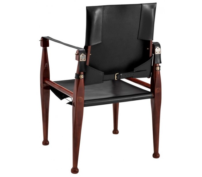Spisebordsstol fra Authentic Models, udført i et design af honningbrun lakeret ahorntræ og sort læder, og måler 89 cm i højden over ryggen.