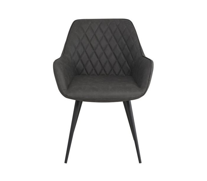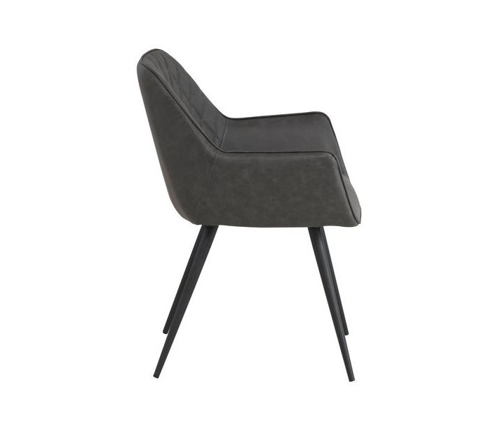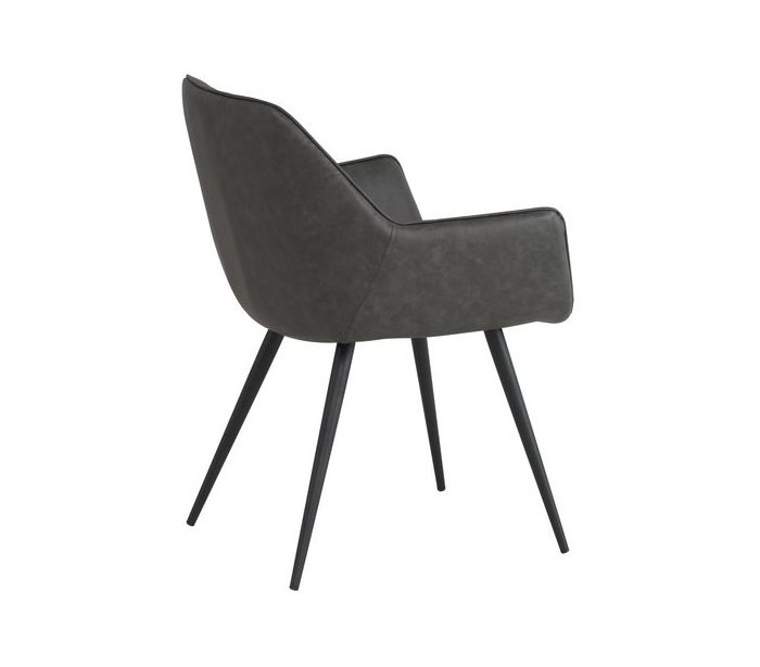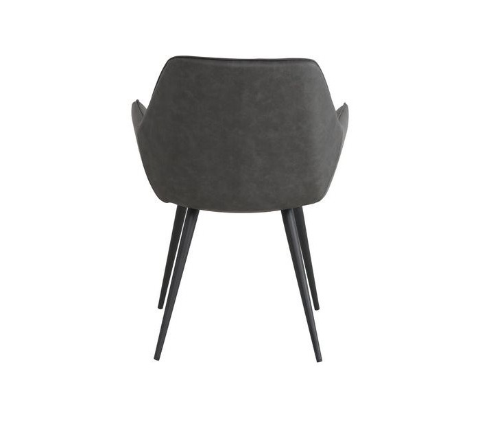 Sæt med 2 spisebordsstole i et industrielt design, fremstillet med sæde i antracitfarvet PU-læder og stel i sortlakeret metal. Stolene måler 83 cm i højden over ryggen og med siddehøjde på 49 cm.