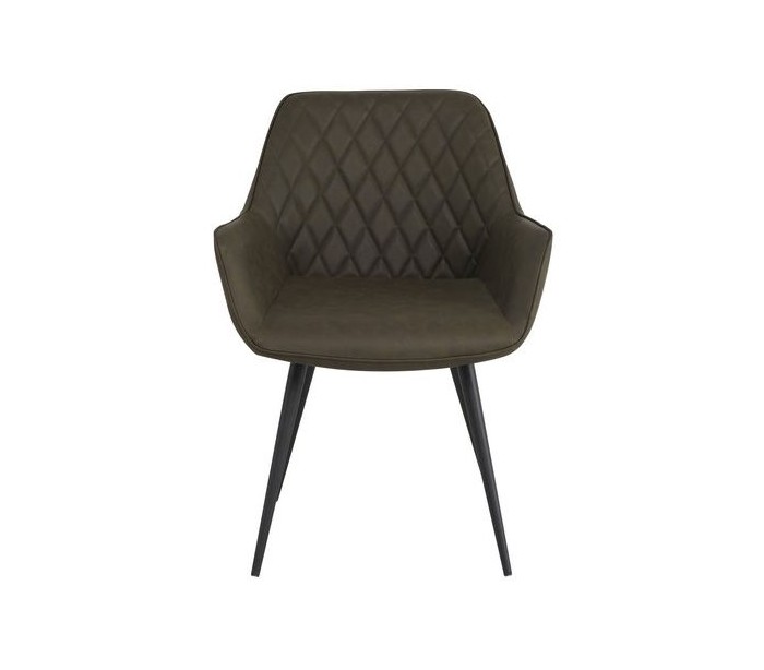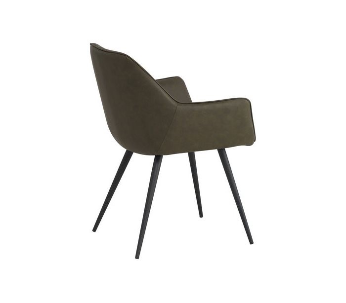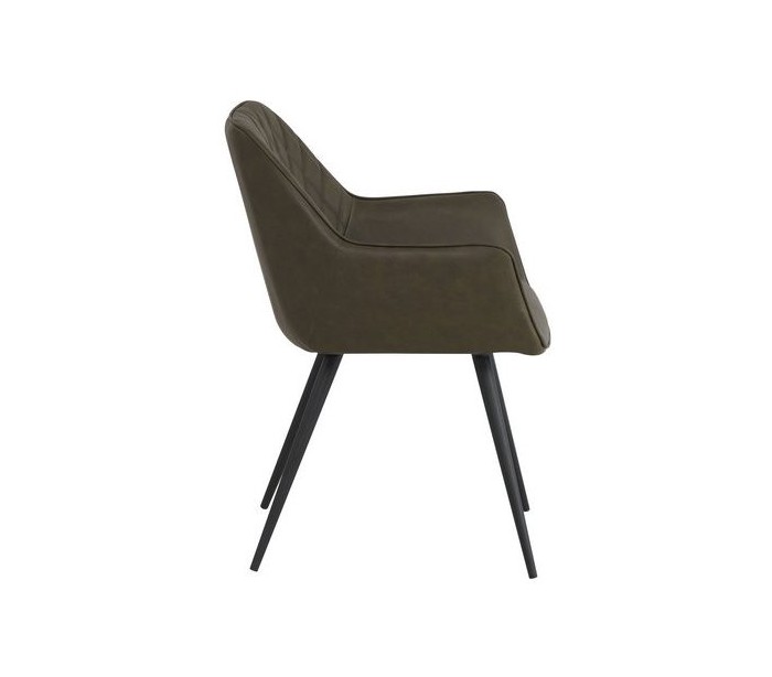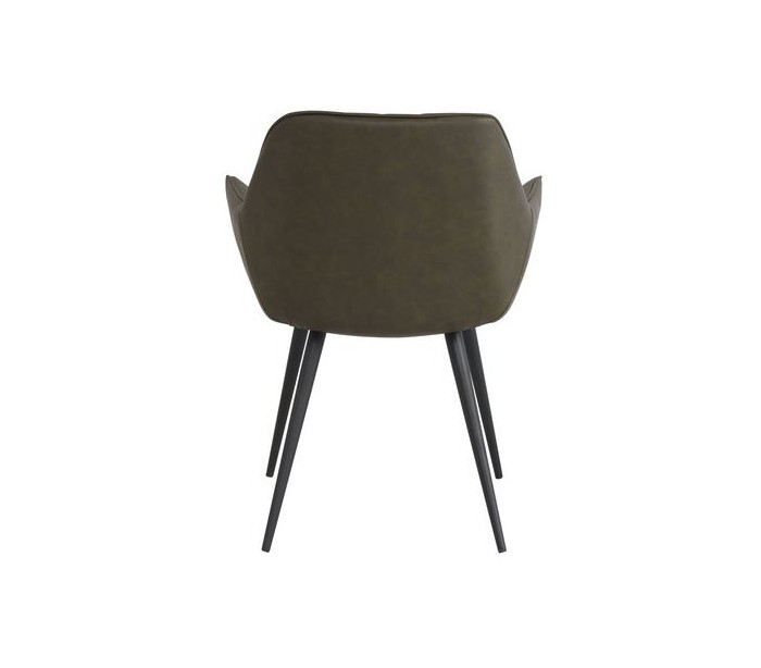 Sæt med 2 spisebordsstole i et industrielt design, fremstillet med sæde i grøn PU-læder og stel i sortlakeret metal. Stolene måler 83 cm i højden over ryggen og med siddehøjde på 49 cm.