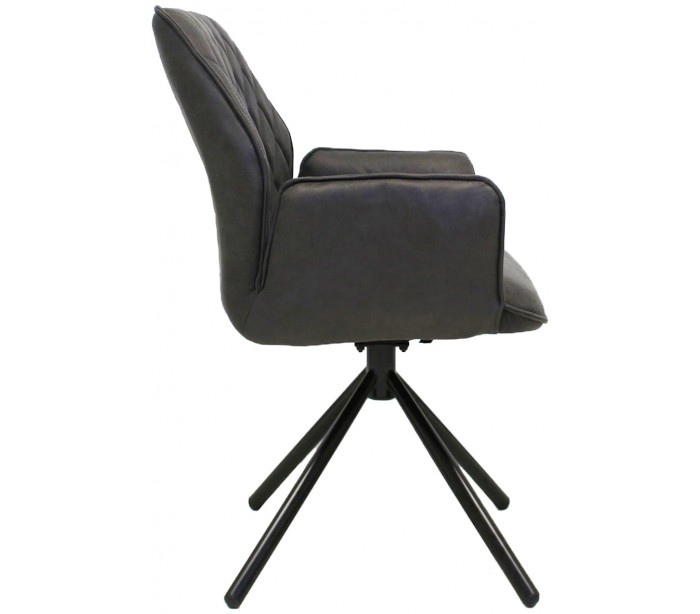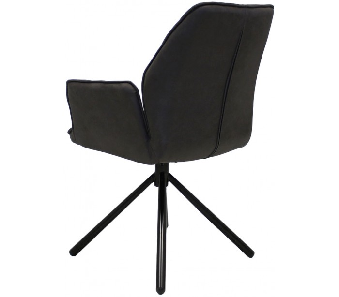 Rotérbar spisebordsstol i et industrielt design, fremstillet med sæde i antracitfarvet mikrofiber og stel i sortlakeret metal. Stolen måler 92 cm i højden over ryggen og med siddehøjde på 49 cm.