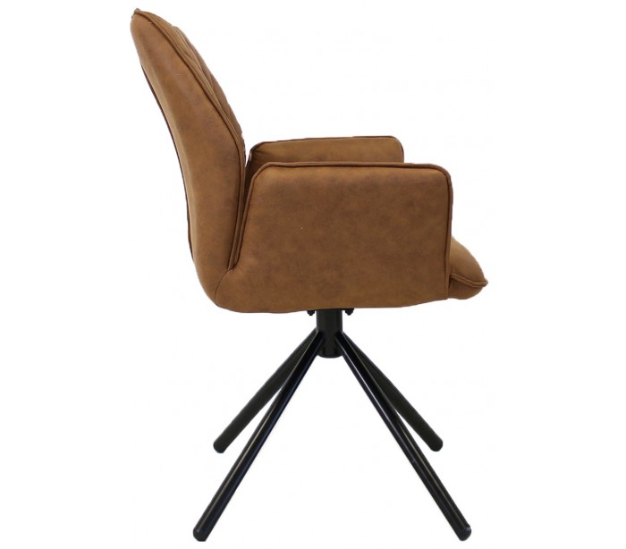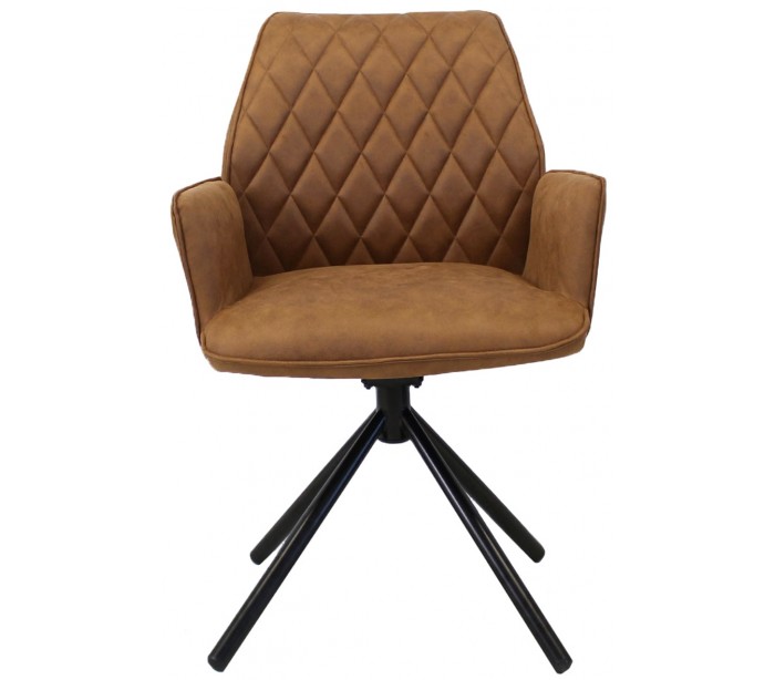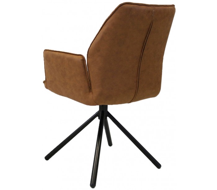 Rotérbar spisebordsstol i et industrielt design, fremstillet med sæde i cognacfarvet mikrofiber og stel i sortlakeret metal. Stolen måler 92 cm i højden over ryggen og med siddehøjde på 49 cm.