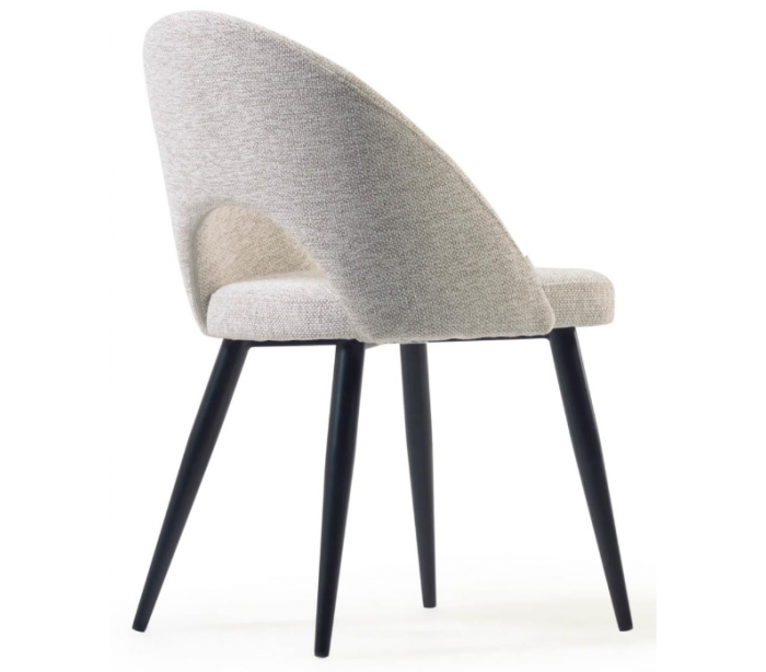 Spisebordsstol i et design fra LaForma. Stolen er fremstillet i beige tekstil og med stel i sortlakeret stål. Stolen måler 82 cm i højden over ryggen og 46 x 50 cm i bredde og dybde.