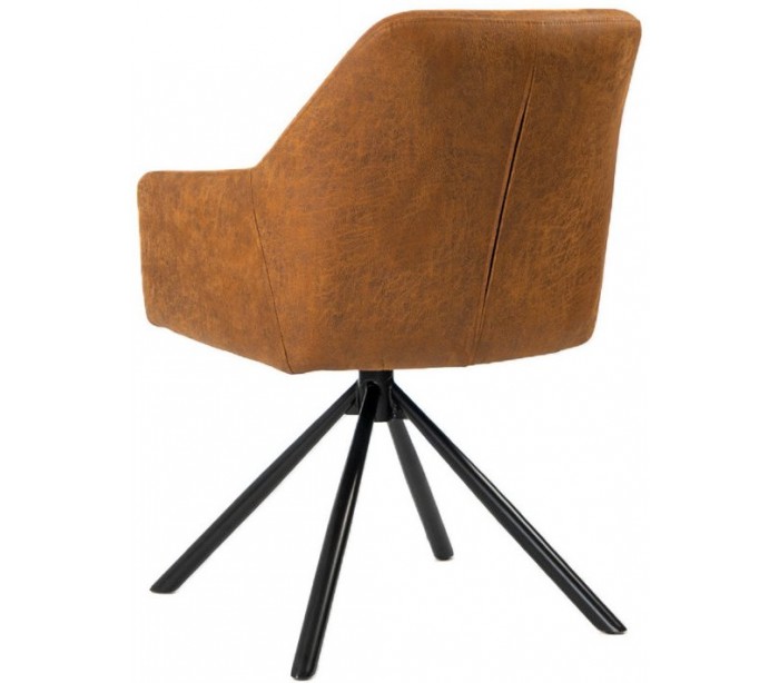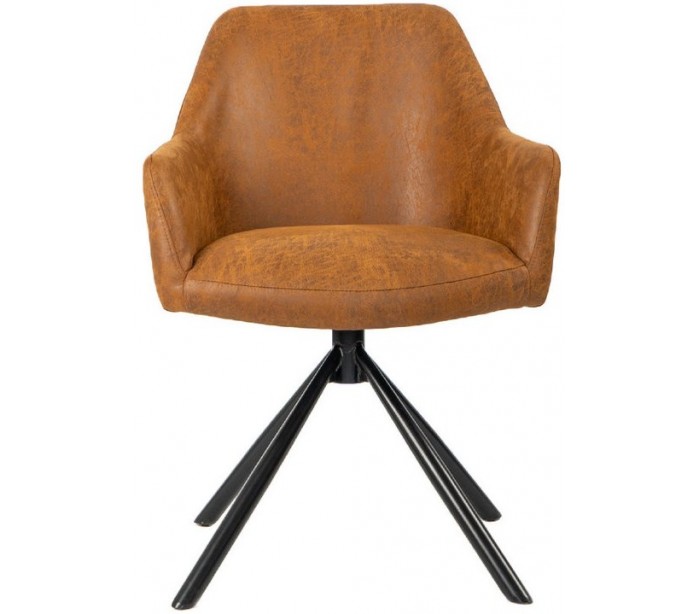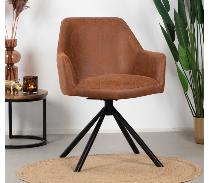 Davie rotérbar spisebordsstol i et moderne design, fremstillet med sæde i vintage cognacfarvet økolæder (70% læder/30% polyester) og ben i sortlakeret metal. Stolen måler 85 cm i højden over ryggen og med siddehøjde på 41 cm. Betrækket er med martindale 45.000 og er vandafvisende, som gør stolen særligt anvendelig til restaurationer/spisesteder.