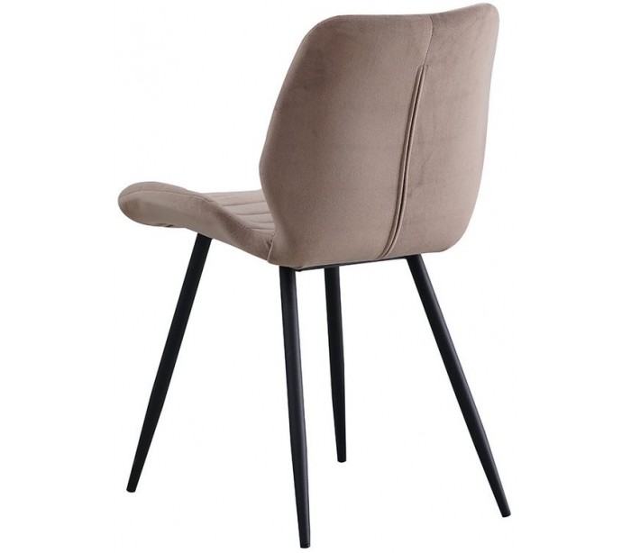 Toby spisebordsstol i et moderne design, fremstillet med sæde i taupefarvet velour og ben i sortlakeret metal. Stolen måler 77 cm i højden over ryggen og med siddehøjde på 48 cm. Betrækket er med martindale 70.000 og er vandafvisende, som gør stolen særligt anvendelig til restaurationer/spisesteder.