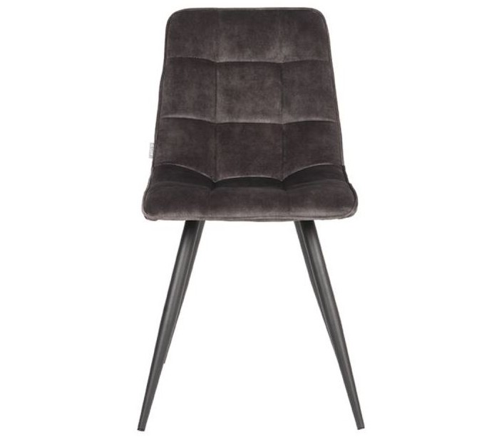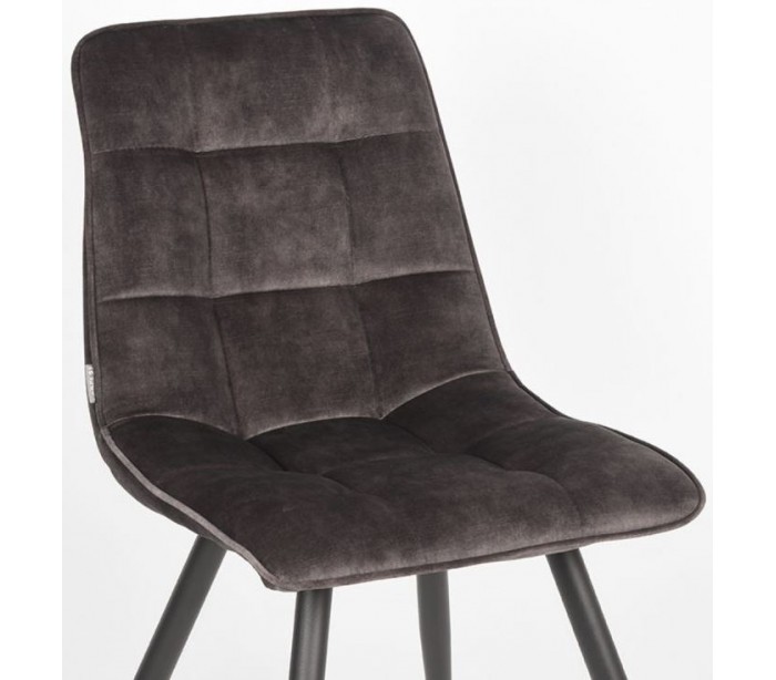 Jelt spisebordsstol udført i et moderne design, fremstillet i antracitfarvet velour og med stel i sortlakeret metal. Stolen måler 85 cm i højden og med siddehøjde på 50 cm.