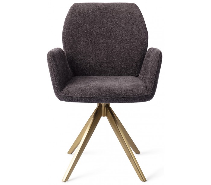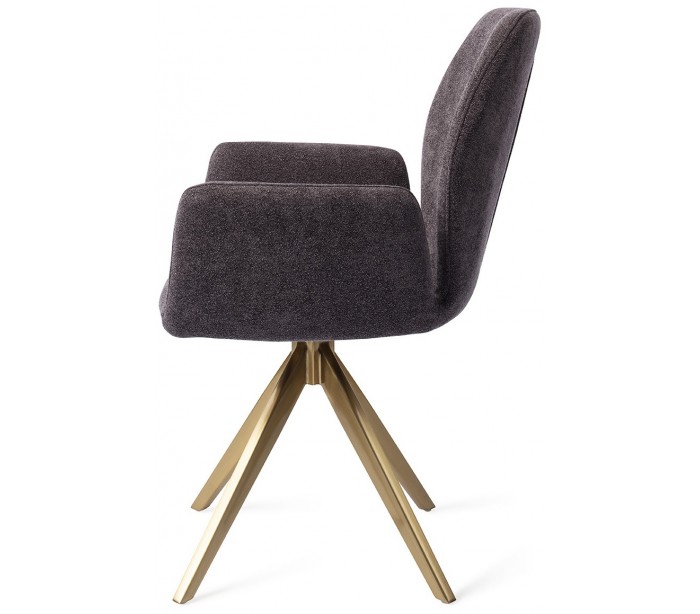Sæt med 2 Misaki spisebordsstole i et moderne design, fremstillet med sæde i antracitfarvet polyester og stel i guldfarvet metal. Stolen måler 87 cm i højden over ryggen og med siddehøjde på 47,5 cm. Stellet er rotérbart.