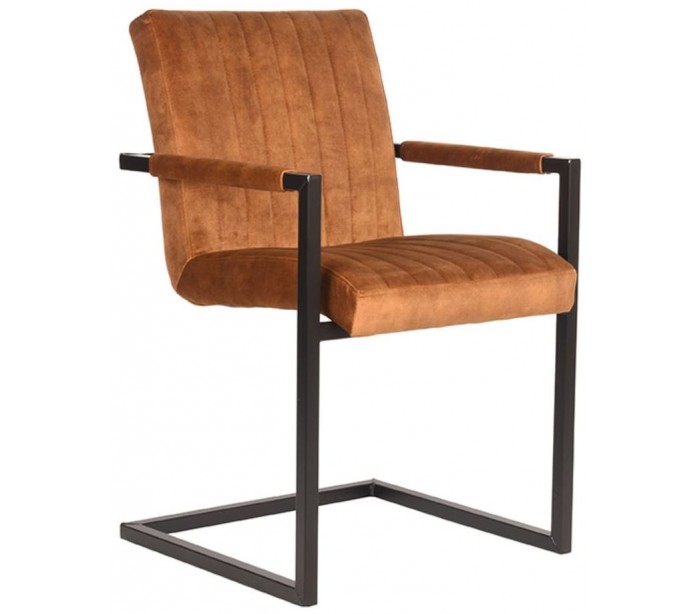 Milo spisesbordsstol i velour og metal H85 cm - Industriel sort/Okker