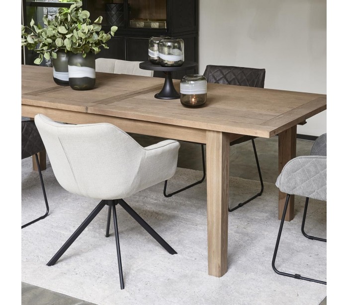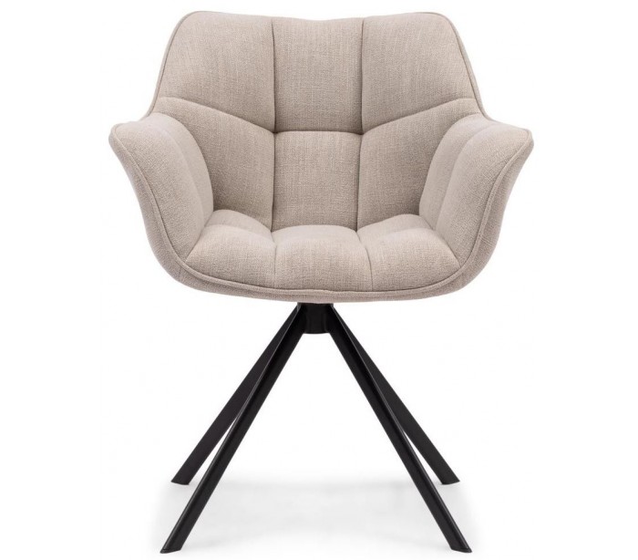 Riviera Maison spisebordsstol i et design af sandfarvet linned og sortlakeret metal. Stolen måler 80 cm i højden over ryggen og 67 cm i bredden. Stolen er rotérbar i stellet.