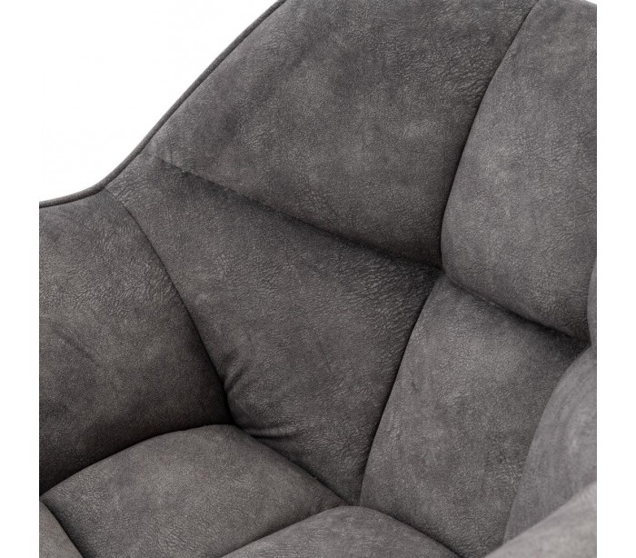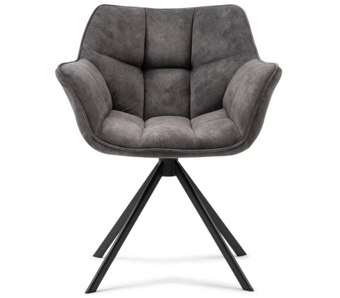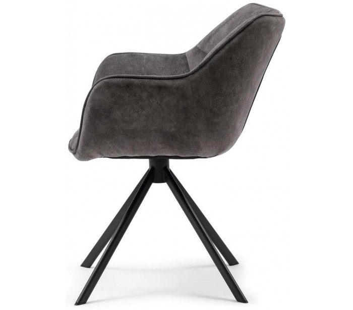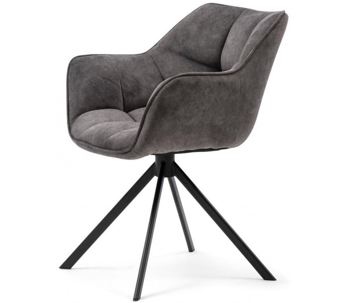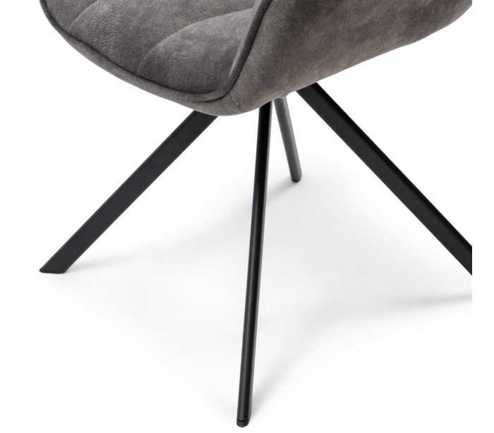 Riviera Maison spisebordsstol i et design af elefantgrå polyester og sortlakeret metal. Stolen måler 80 cm i højden over ryggen og 67 cm i bredden. Stolen er ikke rotérbart i stellet.
