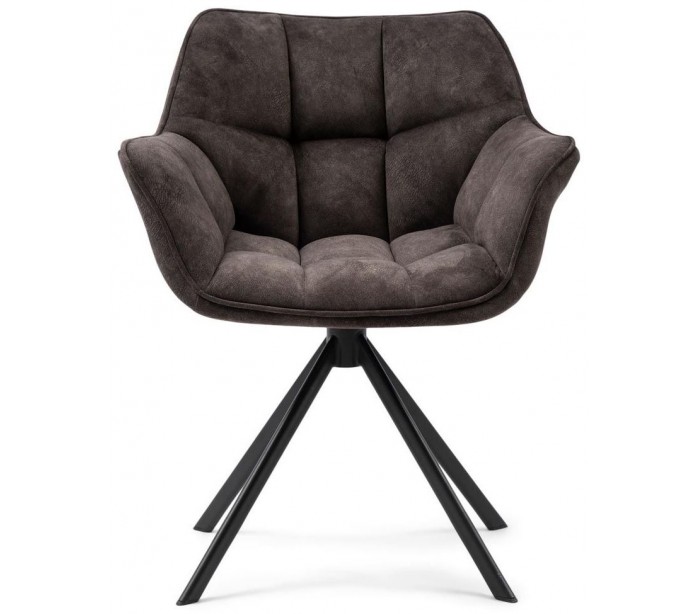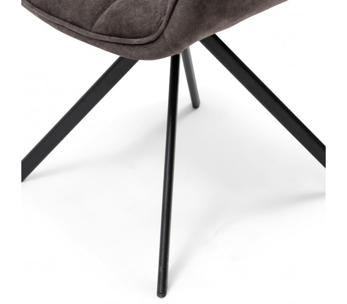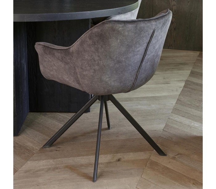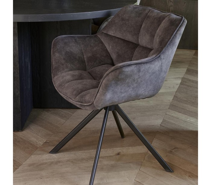 Riviera Maison spisebordsstol i et design af kakaofarvet polyester og sortlakeret metal. Stolen måler 80 cm i højden over ryggen og 67 cm i bredden. Stolen er ikke rotérbart i stellet.