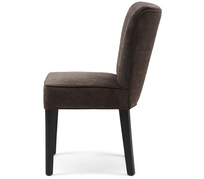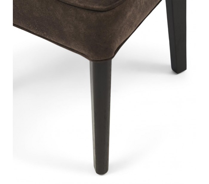 Riviera Maison spisebordsstol i et design af trøffelfarvet polyester og sortlakeret træ. Stolen måler 88 cm i højden over ryggen og 55 cm i bredden.