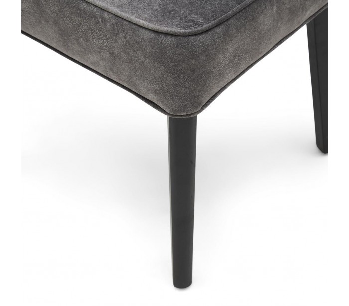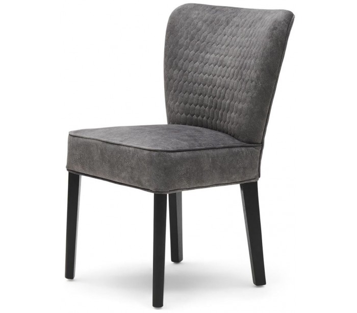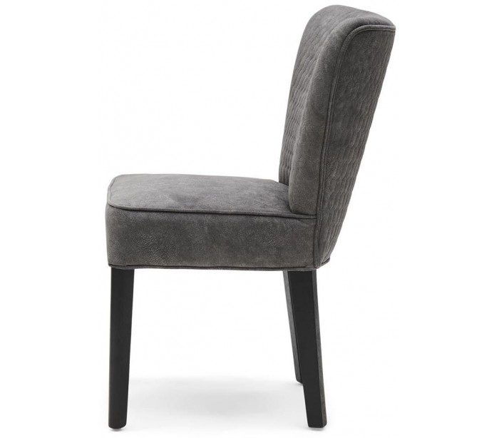Riviera Maison spisebordsstol i et design af elefantgrå polyester og sortlakeret træ. Stolen måler 88 cm i højden over ryggen og 55 cm i bredden.