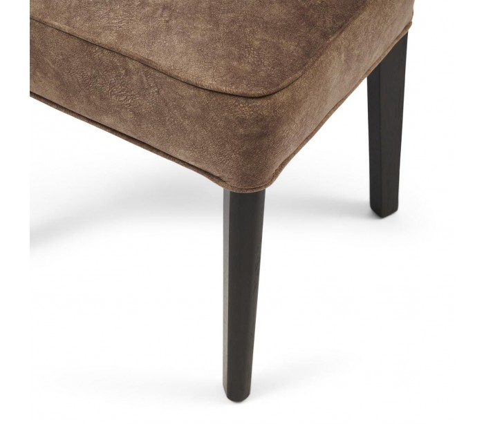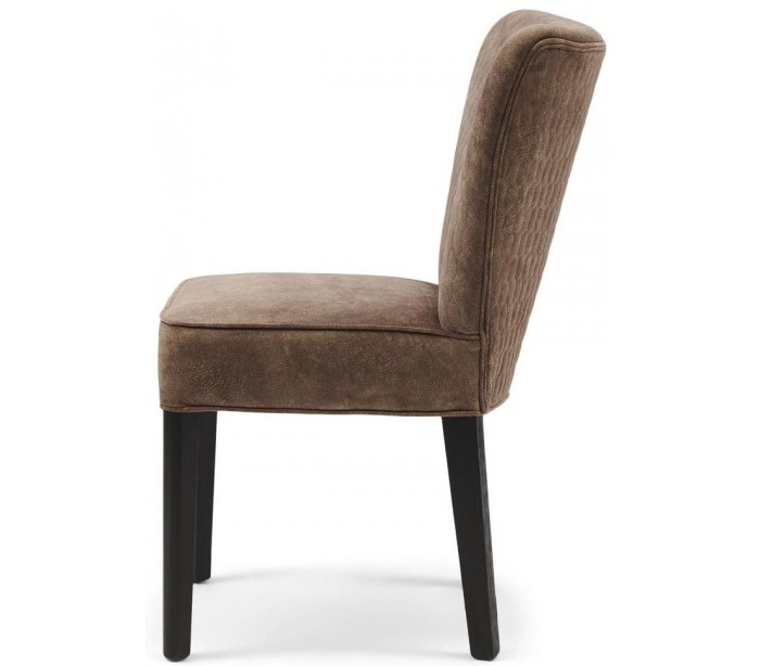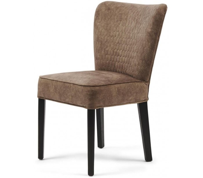 Riviera Maison spisebordsstol i et design af kakaofarvet polyester og sortlakeret træ. Stolen måler 88 cm i højden over ryggen og 55 cm i bredden.