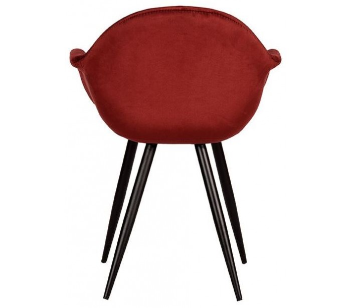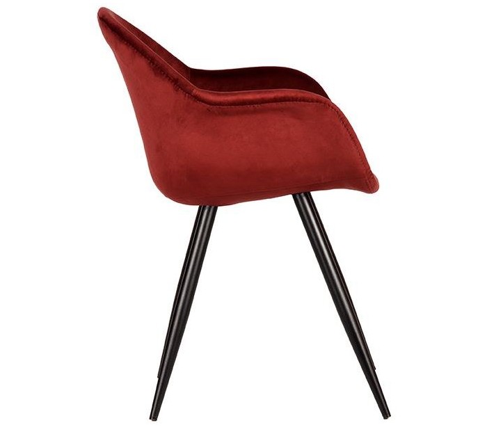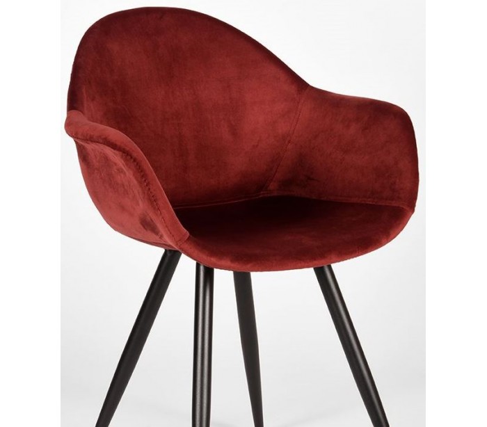 Forli spisebordsstol udført i et design, fremstillet i bordeaux velour og med ben i sortlakeret metal. Stolen måler 83 cm i højden og med siddehøjde på 48 cm.