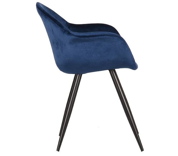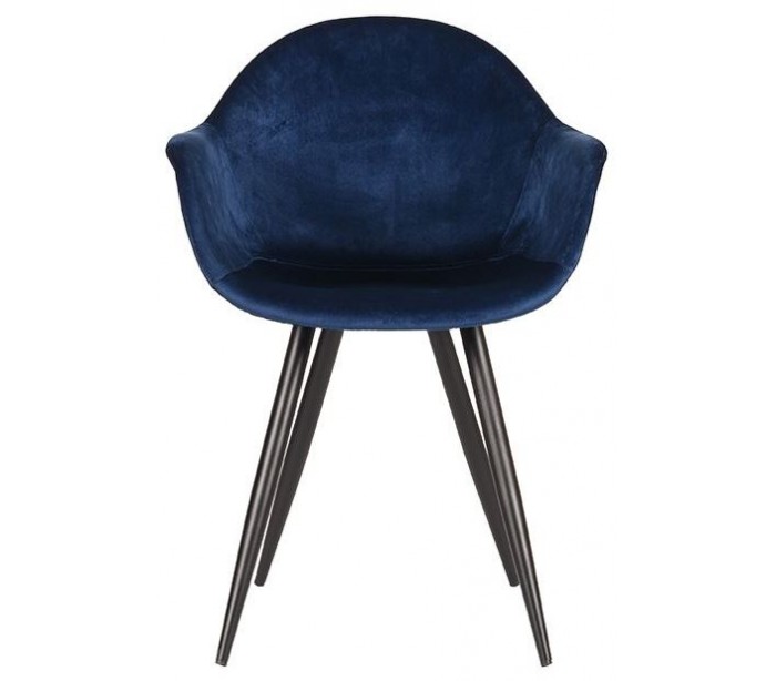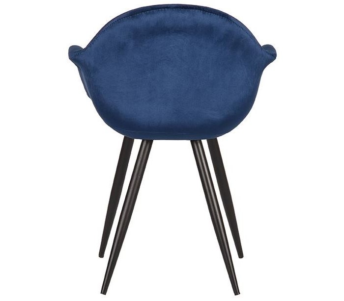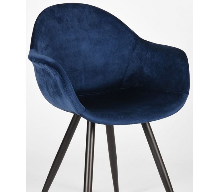 Forli spisebordsstol udført i et design, fremstillet i blå velour og med ben i sortlakeret metal. Stolen måler 83 cm i højden og med siddehøjde på 48 cm.
