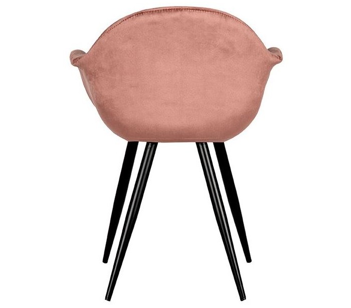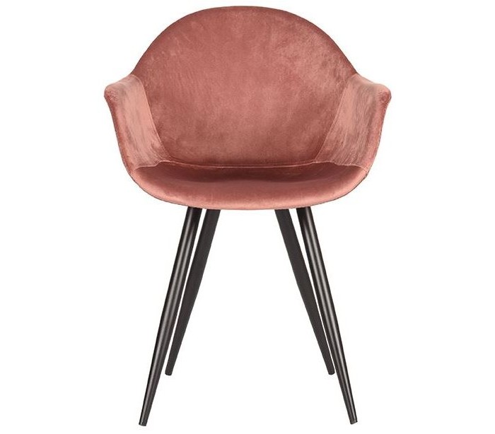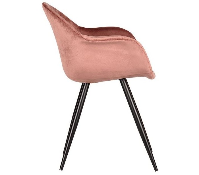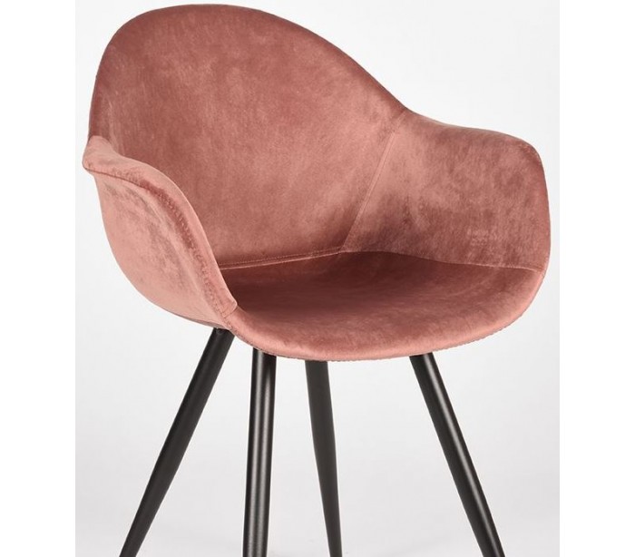 Forli spisebordsstol udført i et design, fremstillet i rosafarvet velour og med ben i sortlakeret metal. Stolen måler 83 cm i højden og med siddehøjde på 48 cm.