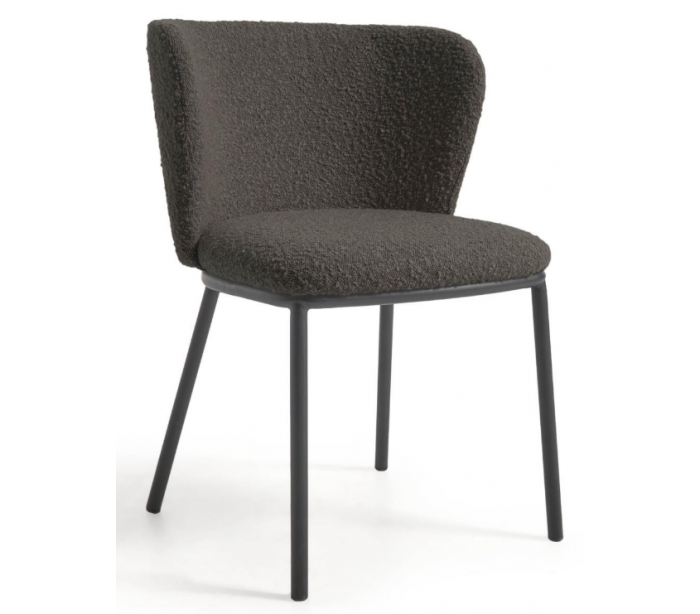 Sæt med 2 Ciselia spisebordsstole, udført i et moderne design af sortlakeret metal og gråsort shearling polyester. Stolene måler 75 cm i højden over ryggen, og med en siddehøjde på 45 cm.