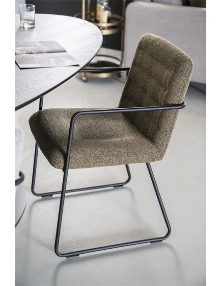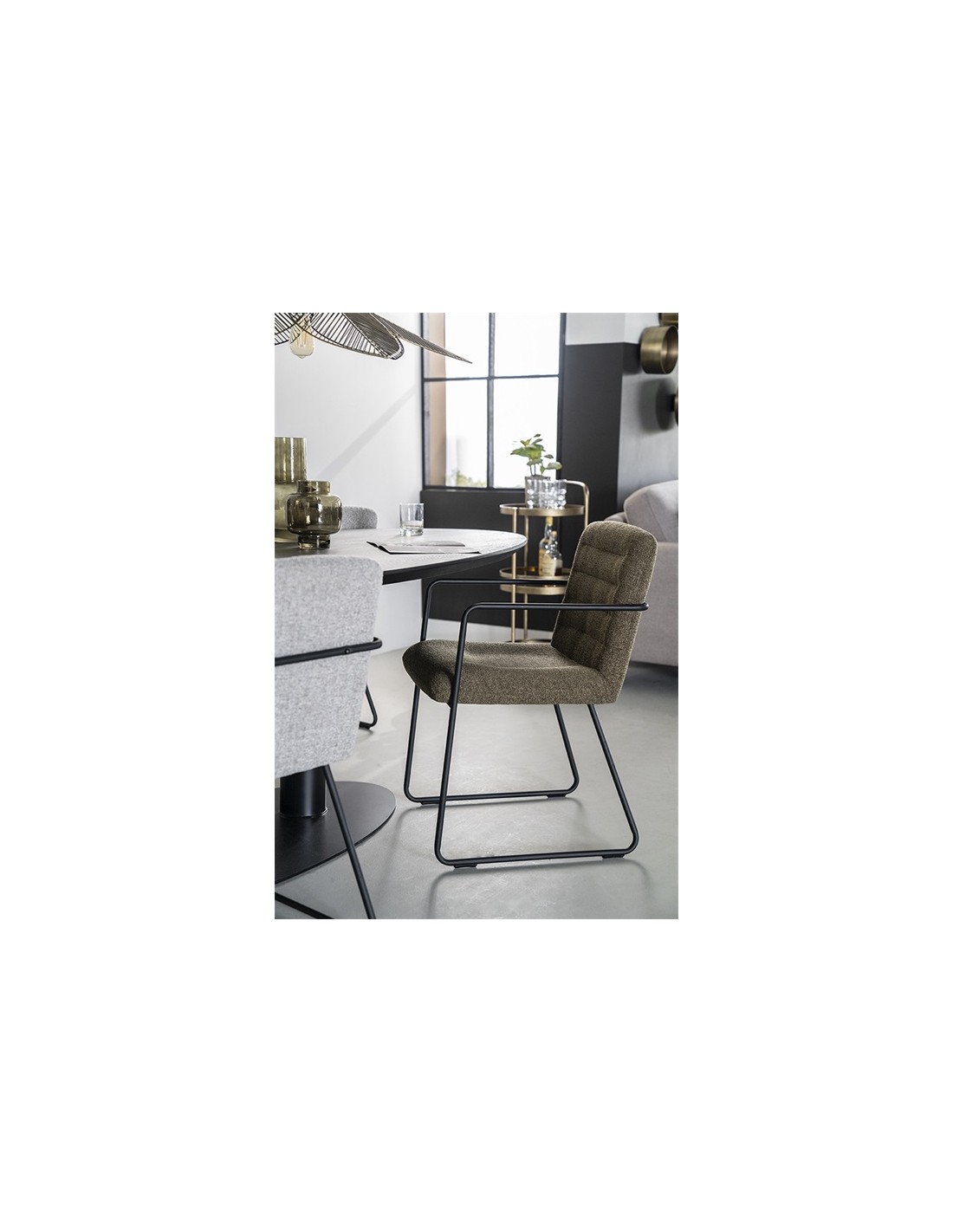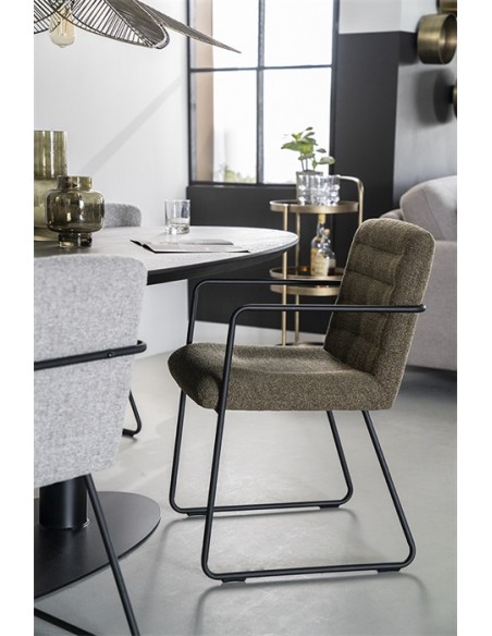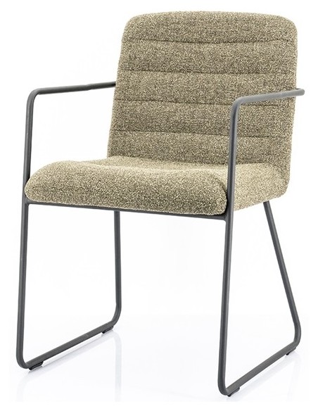 Spisebordsstol med armlæn, fremstillet i et design med stel i sortlakeret metal og sæde samt ryg i polyester. En komfortabel spisebordsstol der vil passe ind i både den moderne, såvel som i den klassiske indretning. Stolen måler 83 cm over ryggen.