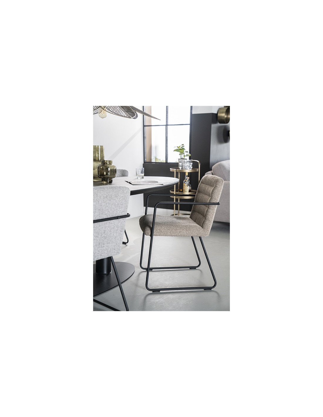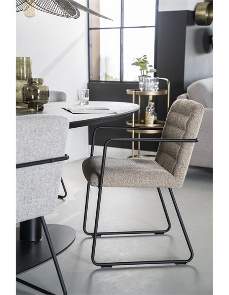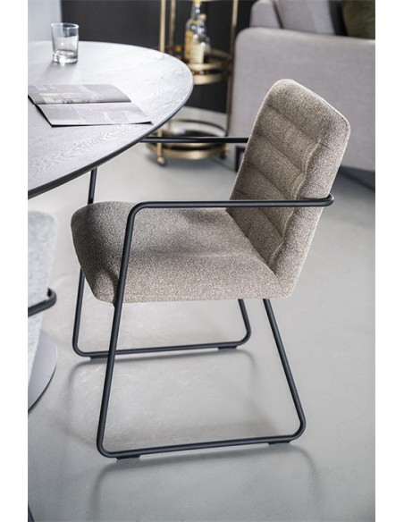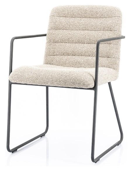 Spisebordsstol med armlæn, fremstillet i et design med stel i sortlakeret metal og sæde samt ryg i polyester. En komfortabel spisebordsstol der vil passe ind i både den moderne, såvel som i den klassiske indretning. Stolen måler 83 cm over ryggen.