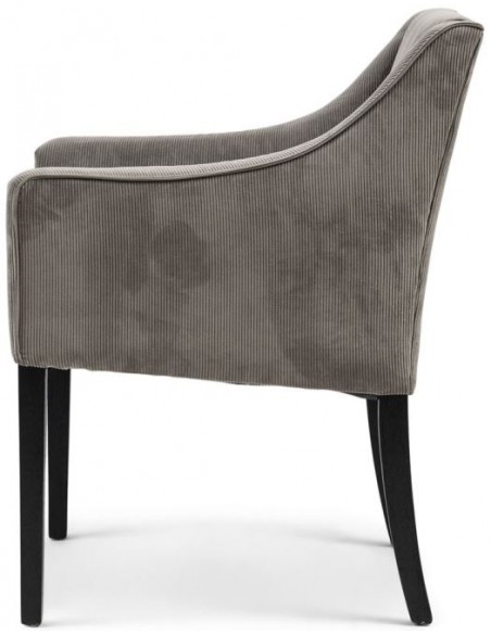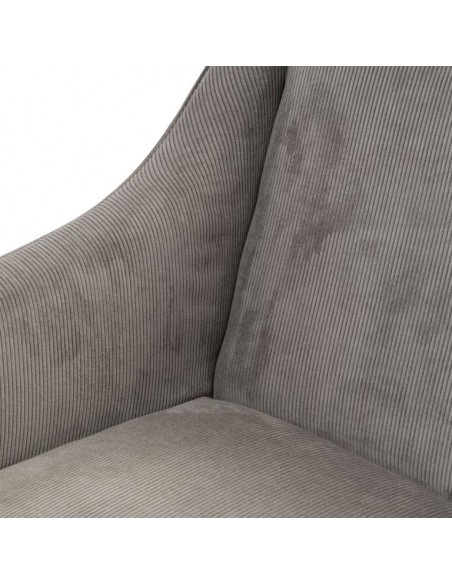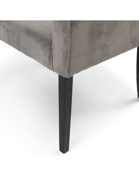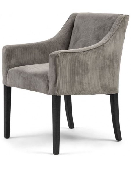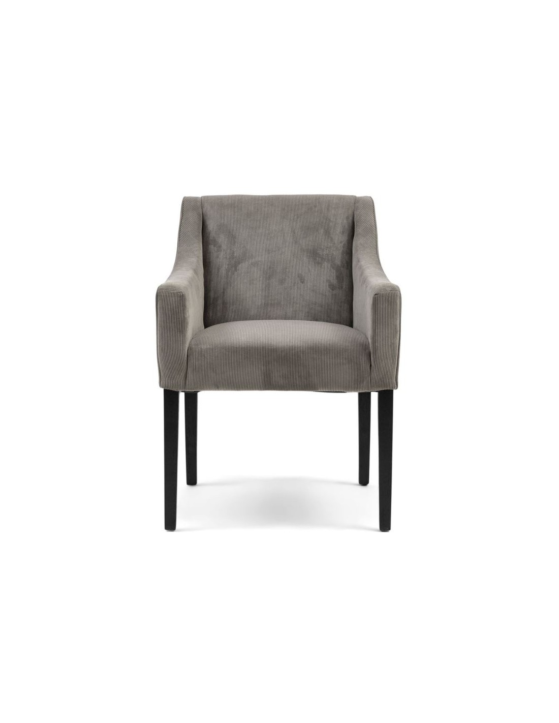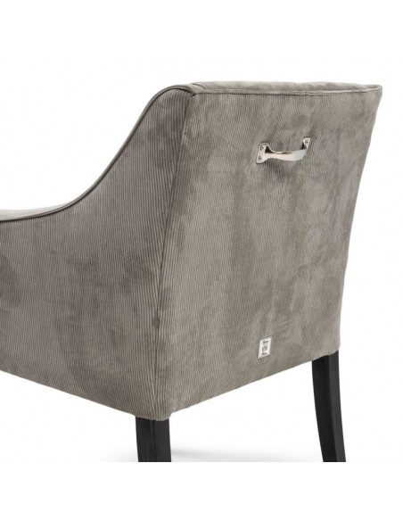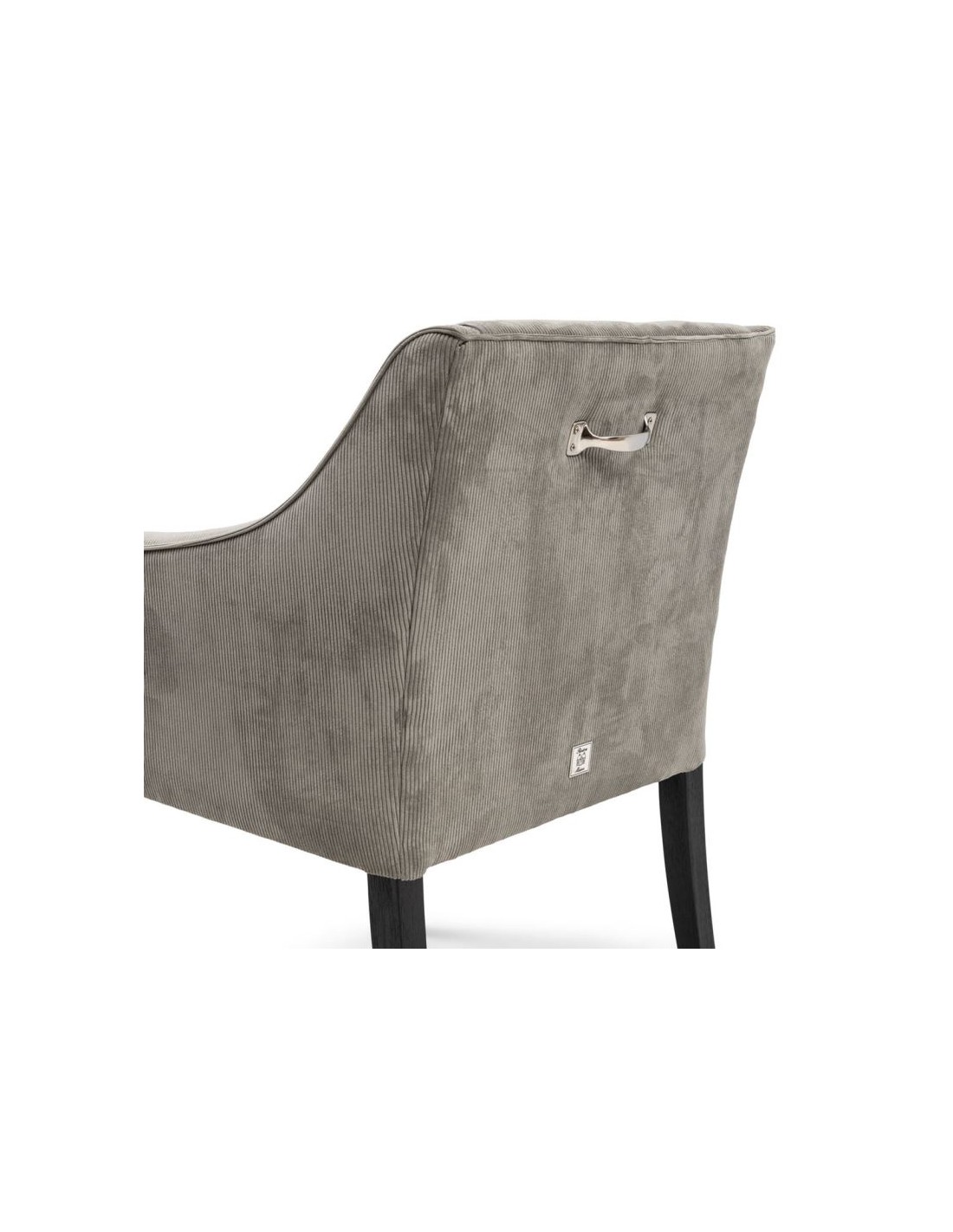 Riviera Maison spisebordsstol i et design af musegrå ripcurl polyester og sortlakeret træ. Stolen måler 86 cm i højden over ryggen og 56 cm i bredden. Detajle med håndtag på bagside.