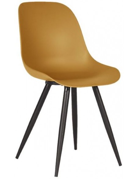 Spisebordsstol udført i et design fremstillet af sortlakeret metal og okkerfarvet kunststof. Spisebordsstolen måler 88 cm i højden over ryggen og 46 cm i bredden.
