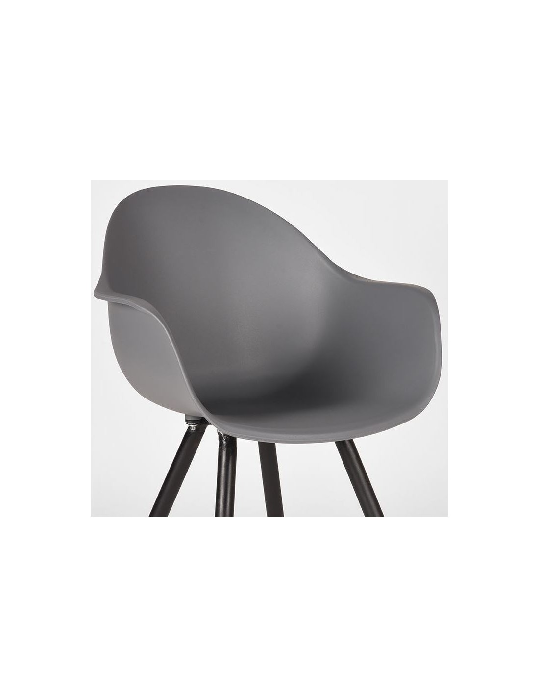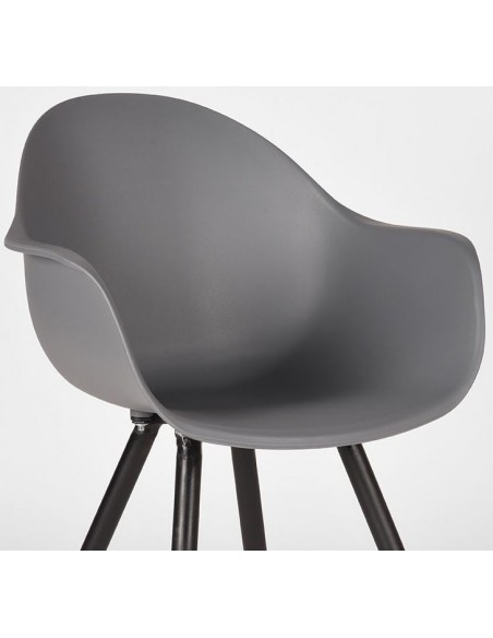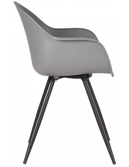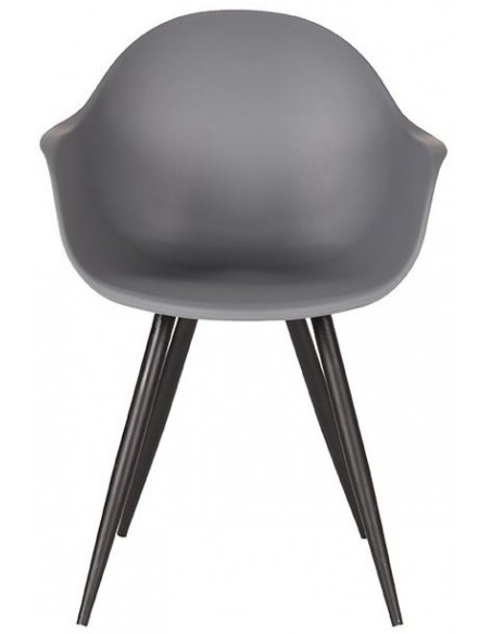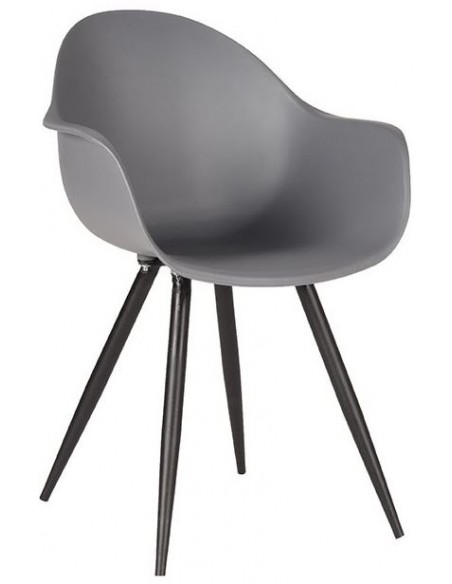Spisebordsstol udført i et design fremstillet af sortlakeret metal og antracitfarvet kunststof. Spisebordsstolen måler 85 cm i højden over ryggen og 58 cm i bredden.