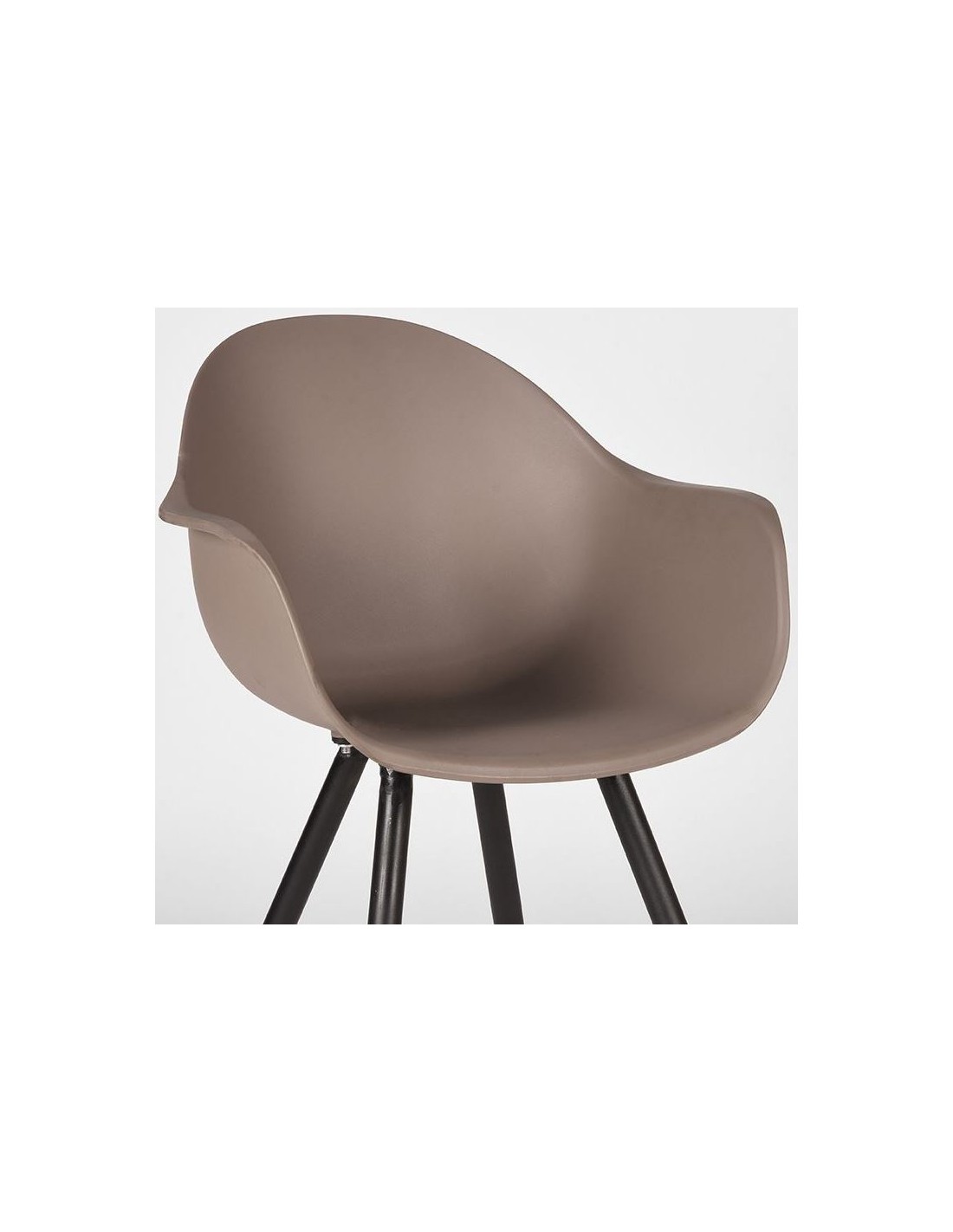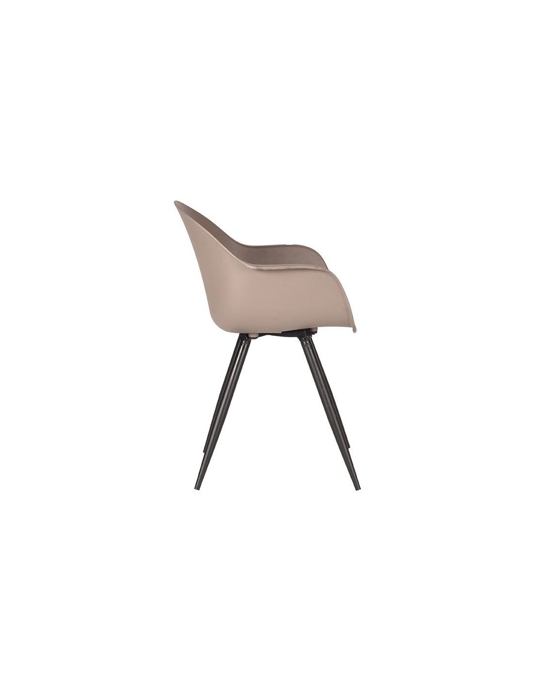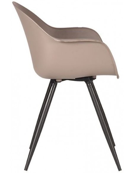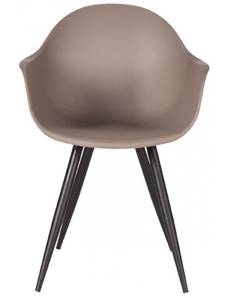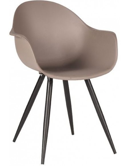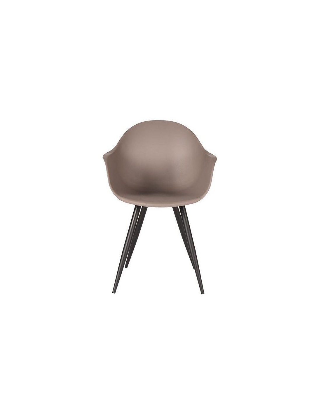 Spisebordsstol udført i et design fremstillet af sortlakeret metal og kaffefarvet kunststof. Spisebordsstolen måler 85 cm i højden over ryggen og 58 cm i bredden.