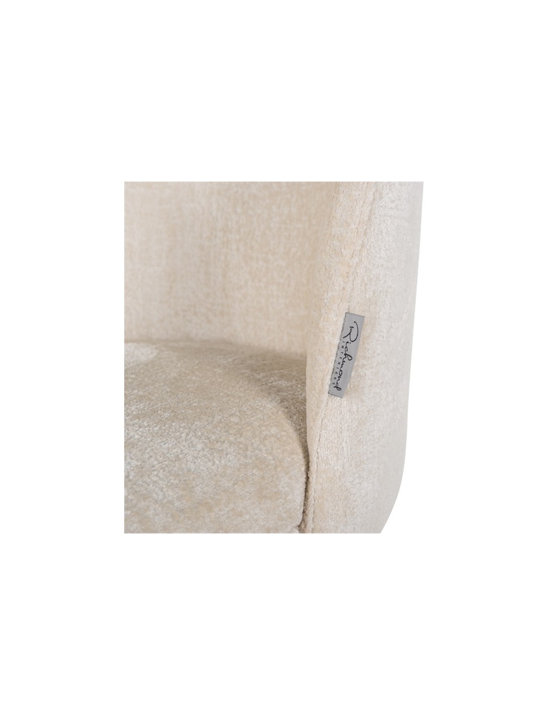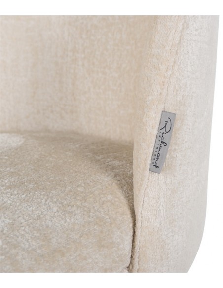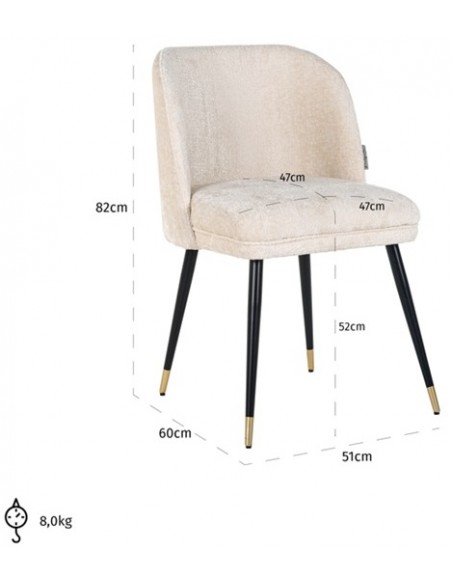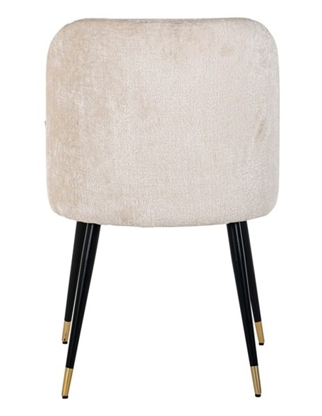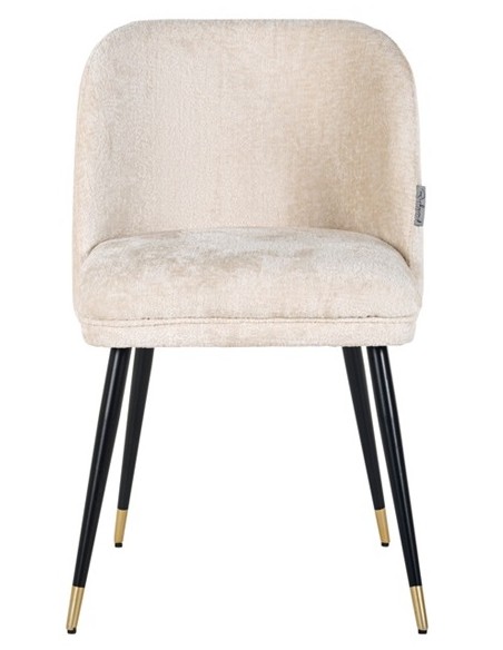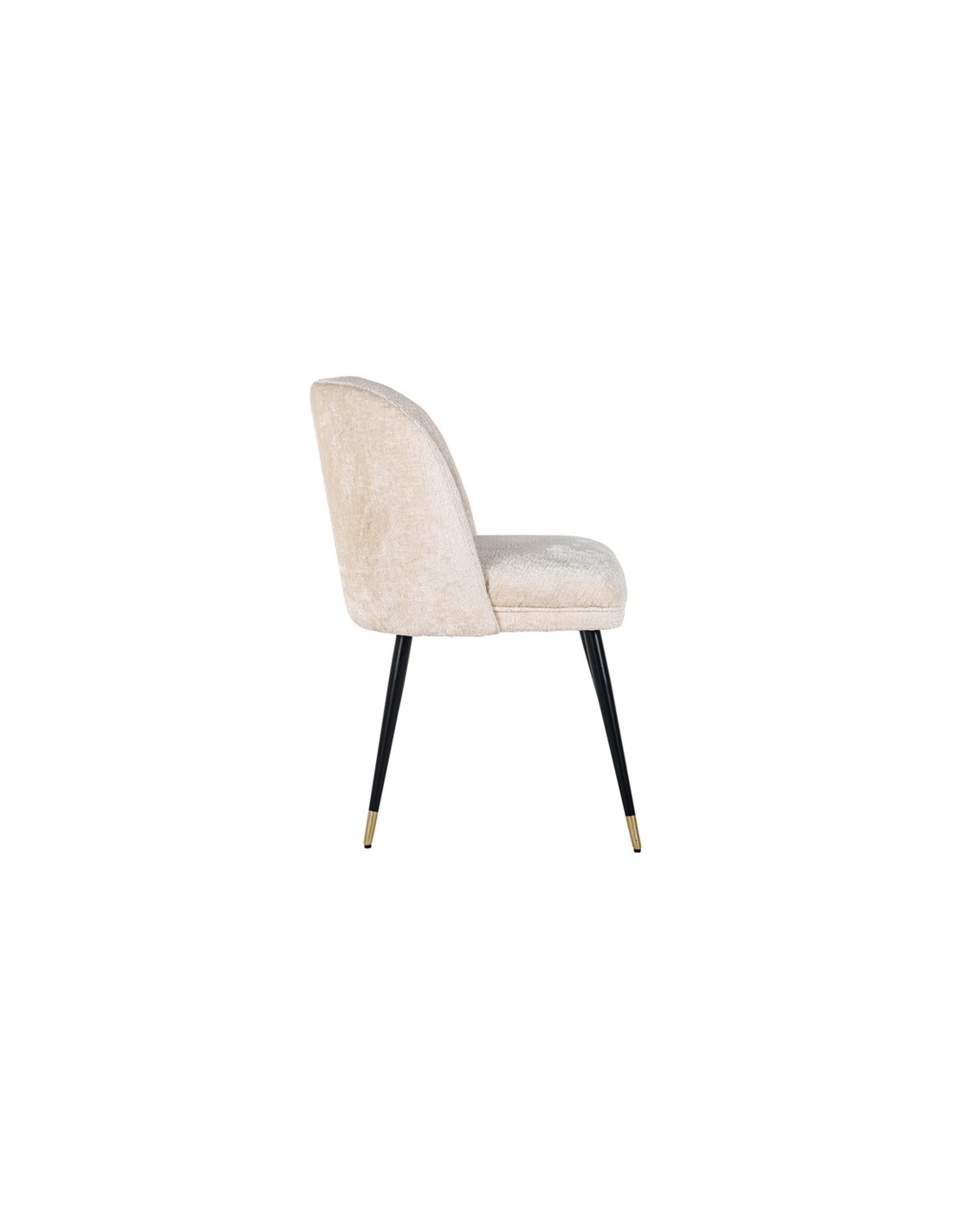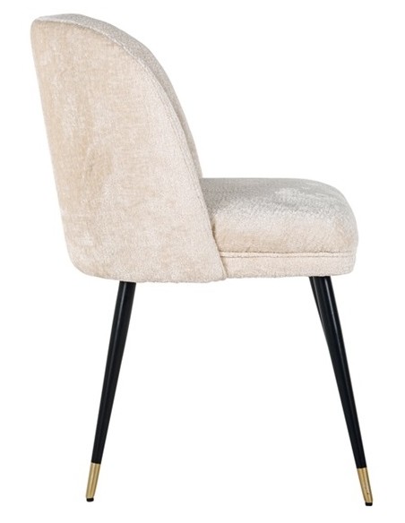 Spisebordsstol i et design fra hollandske Richmond Interiors. Stolen er fremstillet i beigehvid chenille ruflet og med ben i sortlakeret træ med detaljer i børstet messingfarvet metal. Stolen måler 82 cm i højden over ryggen og 51 x 60 cm i bredde og dybde.