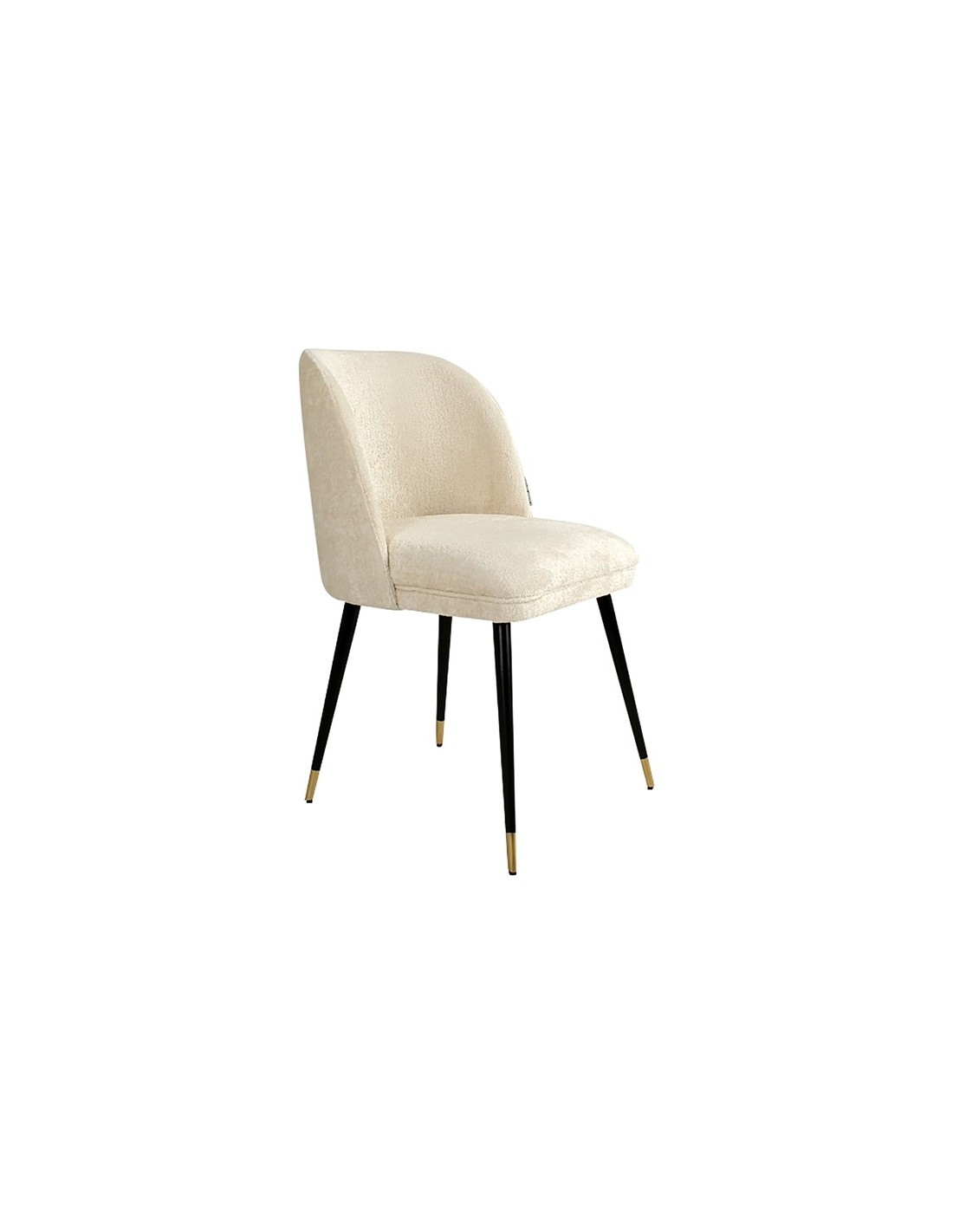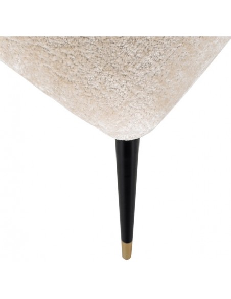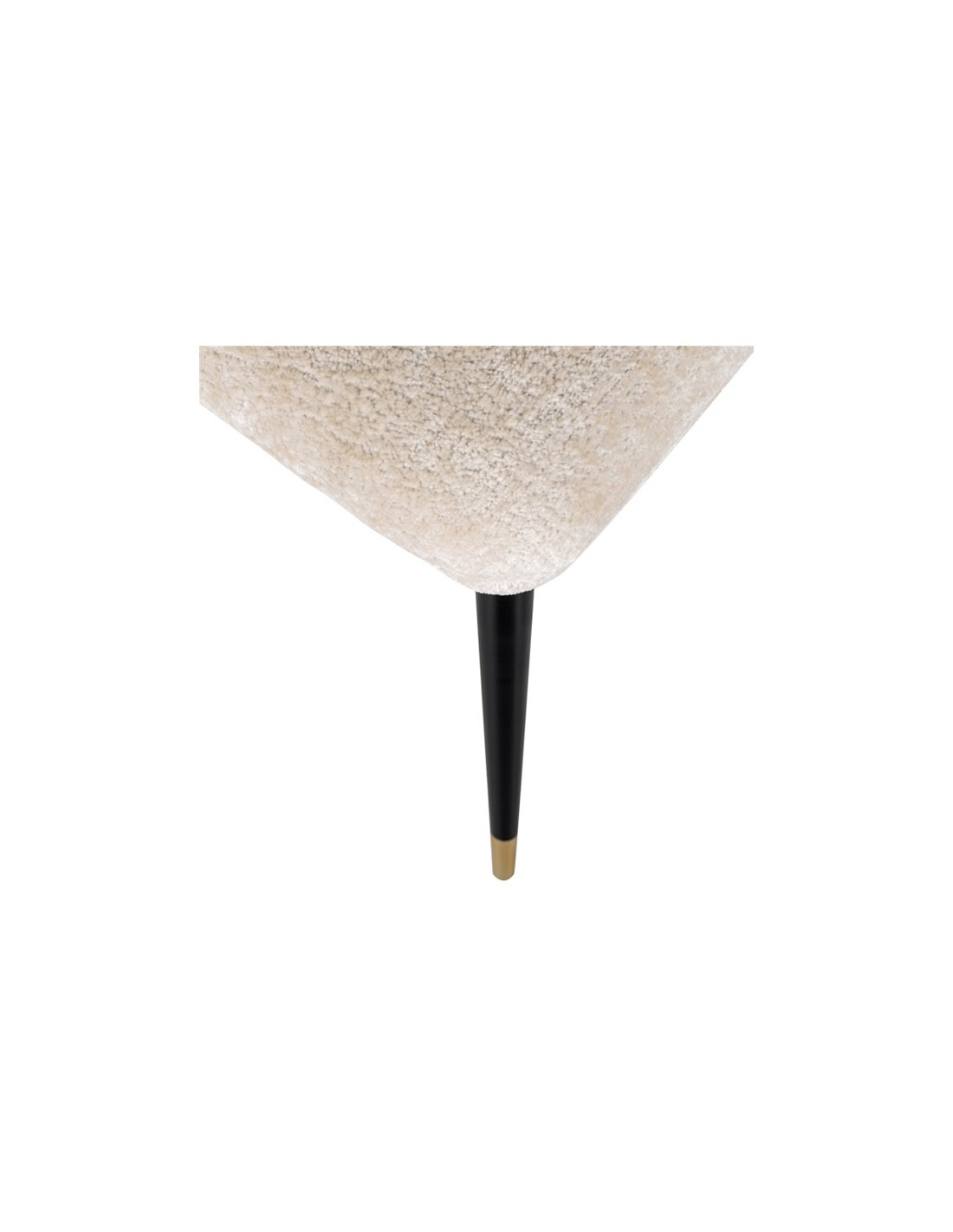 Spisebordsstol i et design fra hollandske Richmond Interiors. Stolen er fremstillet i beigehvid chenille ruflet og med ben i sortlakeret træ med detaljer i børstet messingfarvet metal. Stolen måler 82 cm i højden over ryggen og 51 x 60 cm i bredde og dybde.