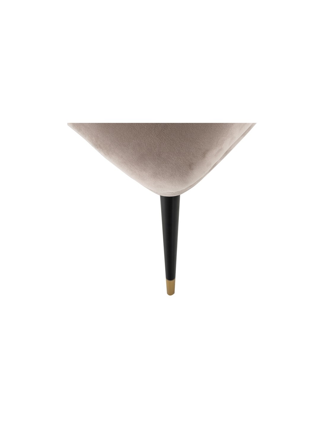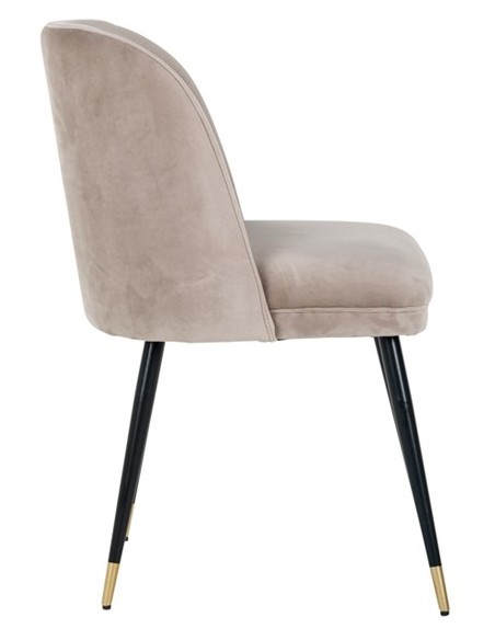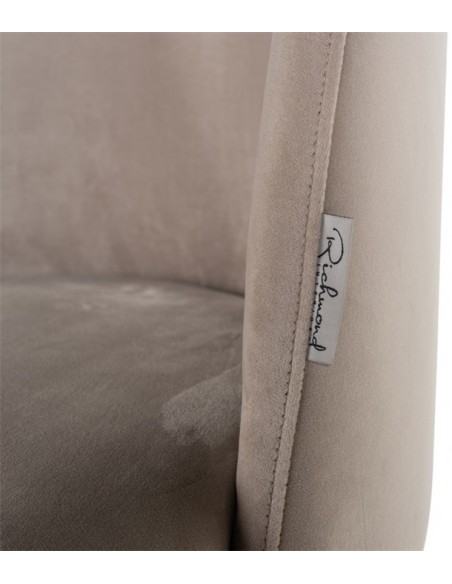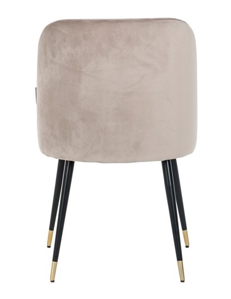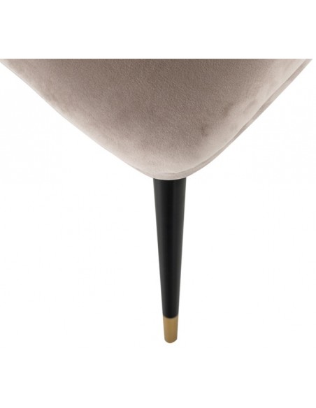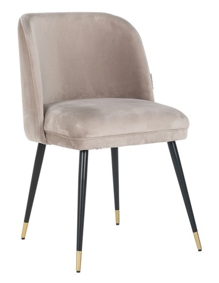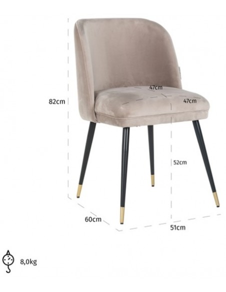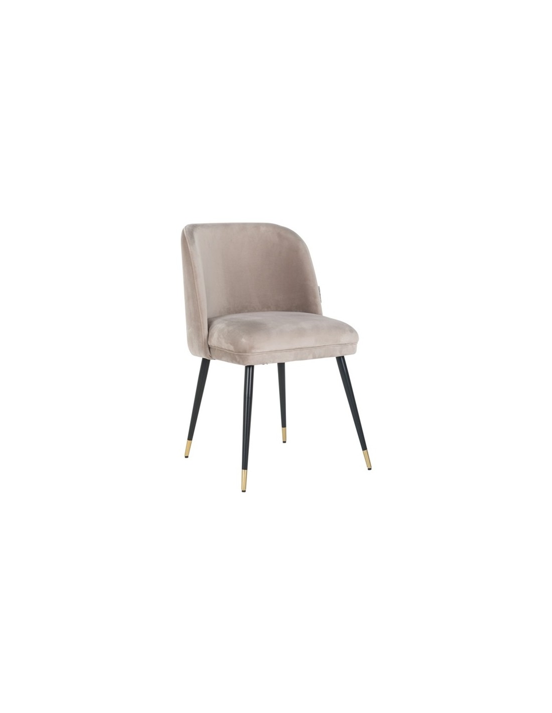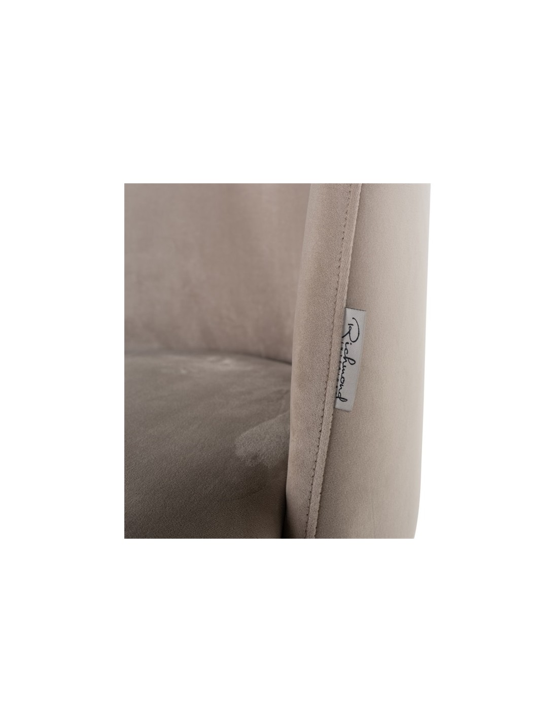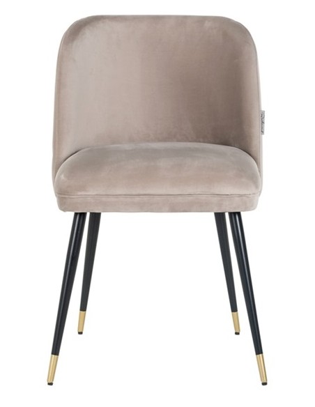 Spisebordsstol i et design fra hollandske Richmond Interiors. Stolen er fremstillet i khakifarvet velour og med ben i sortlakeret træ med detaljer i børstet messingfarvet metal. Stolen måler 82 cm i højden over ryggen og 51 x 60 cm i bredde og dybde.