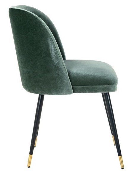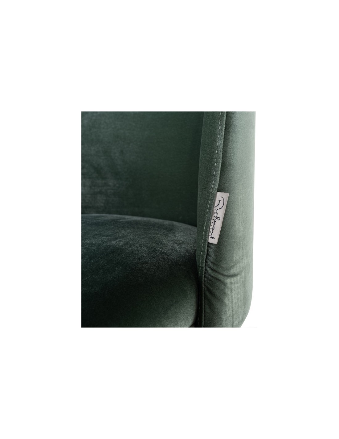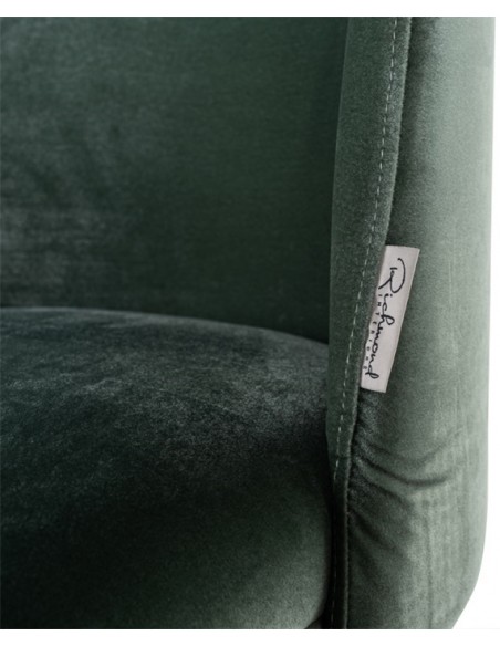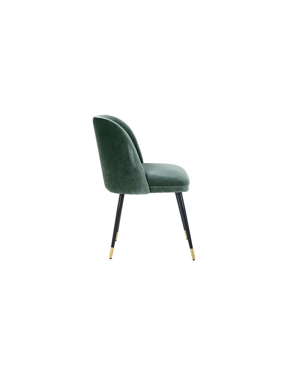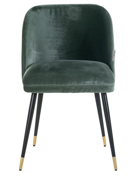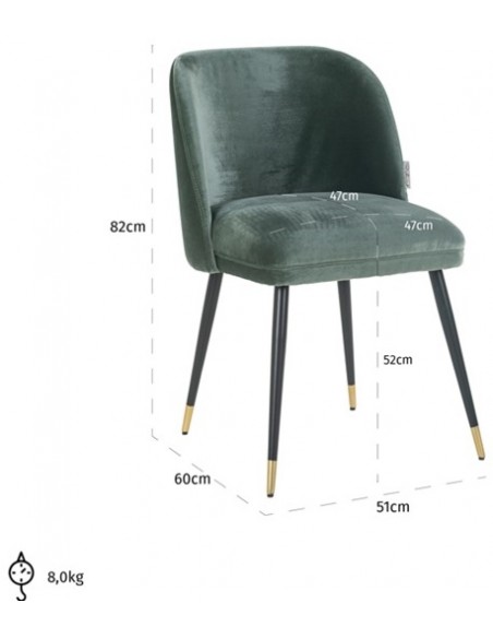 Spisebordsstol i et design fra hollandske Richmond Interiors. Stolen er fremstillet i jadegrøn velour og med ben i sortlakeret træ med detaljer i børstet messingfarvet metal. Stolen måler 82 cm i højden over ryggen og 51 x 60 cm i bredde og dybde.