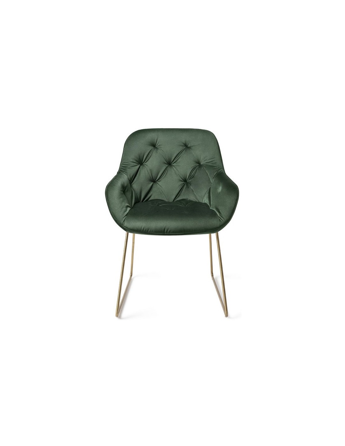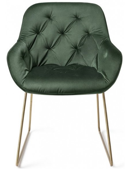 Sæt med 2 Tara spisebordsstole i et moderne design, fremstillet med sæde i junglegrøn velour og stel i guldfarvet metal. Stolen måler 84 cm i højden over ryggen og med siddehøjde på 48 cm.