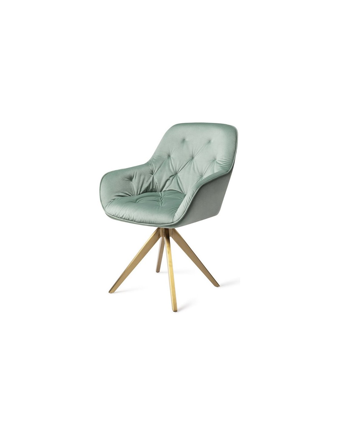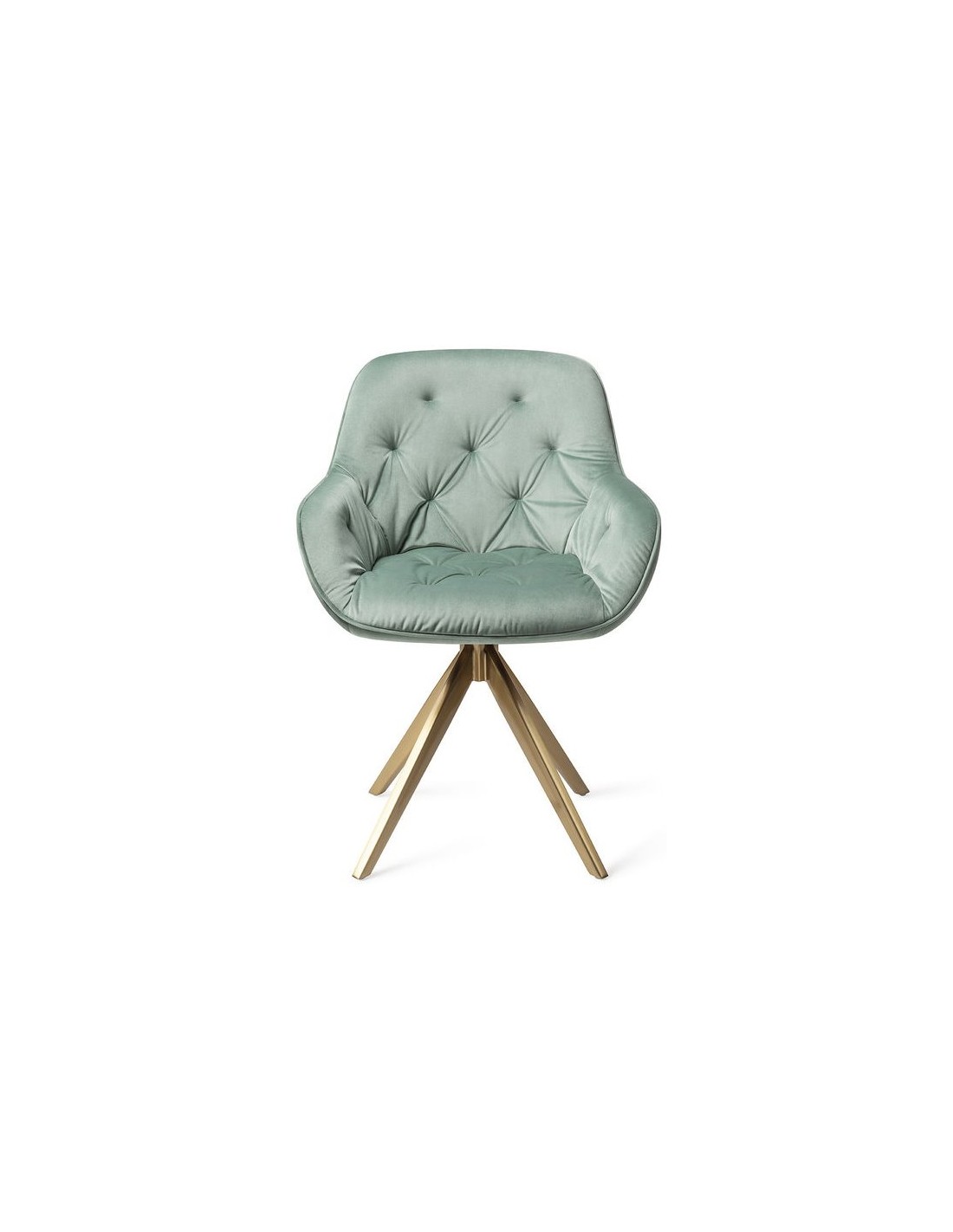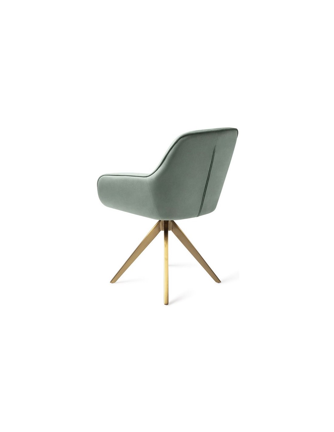 Sæt med 2 Tara spisebordsstole i et moderne design, fremstillet med sæde i jadegrøn velour og stel i guldfarvet metal. Stolen måler 84 cm i højden over ryggen og med siddehøjde på 48 cm. Stellet er rotérbart.