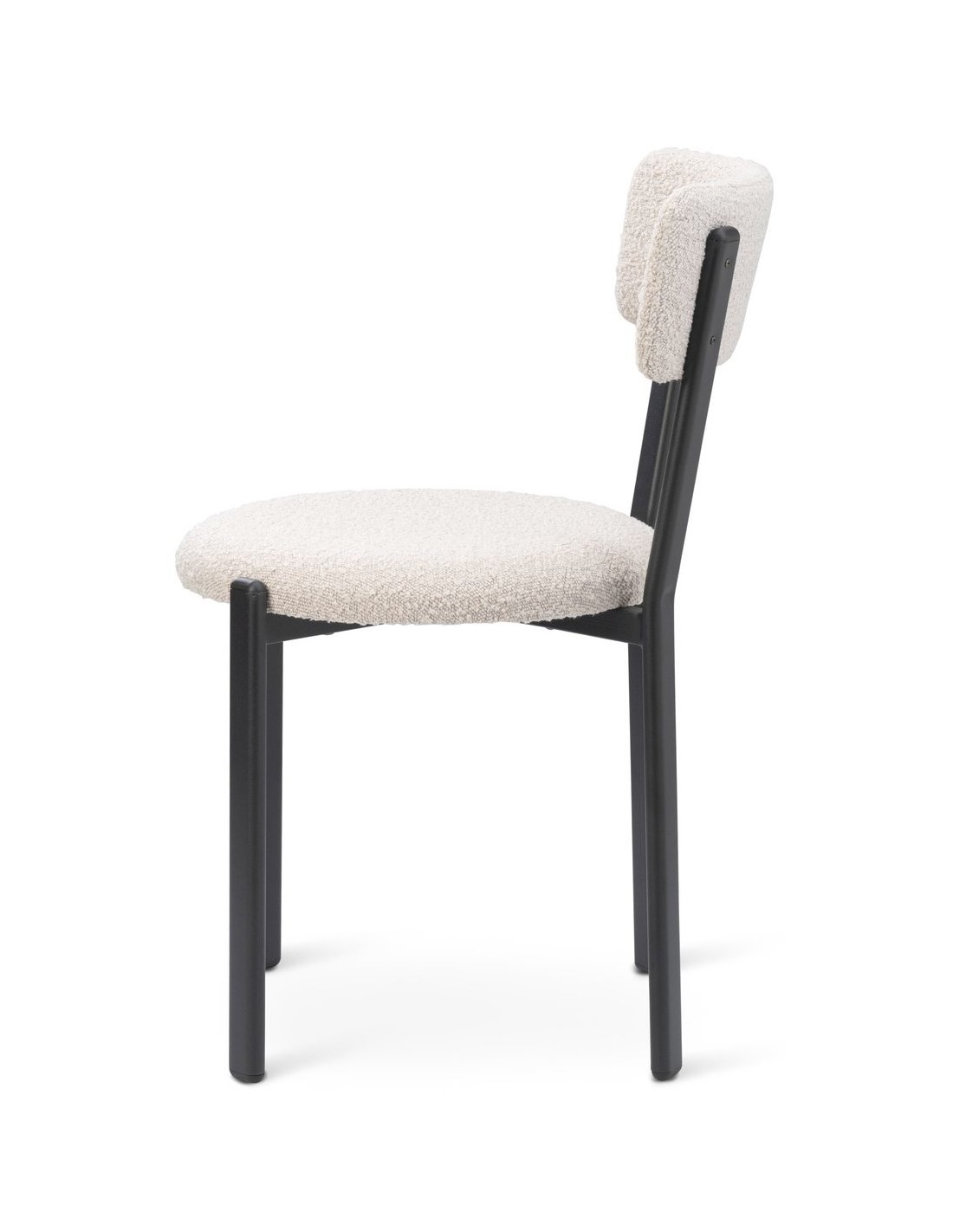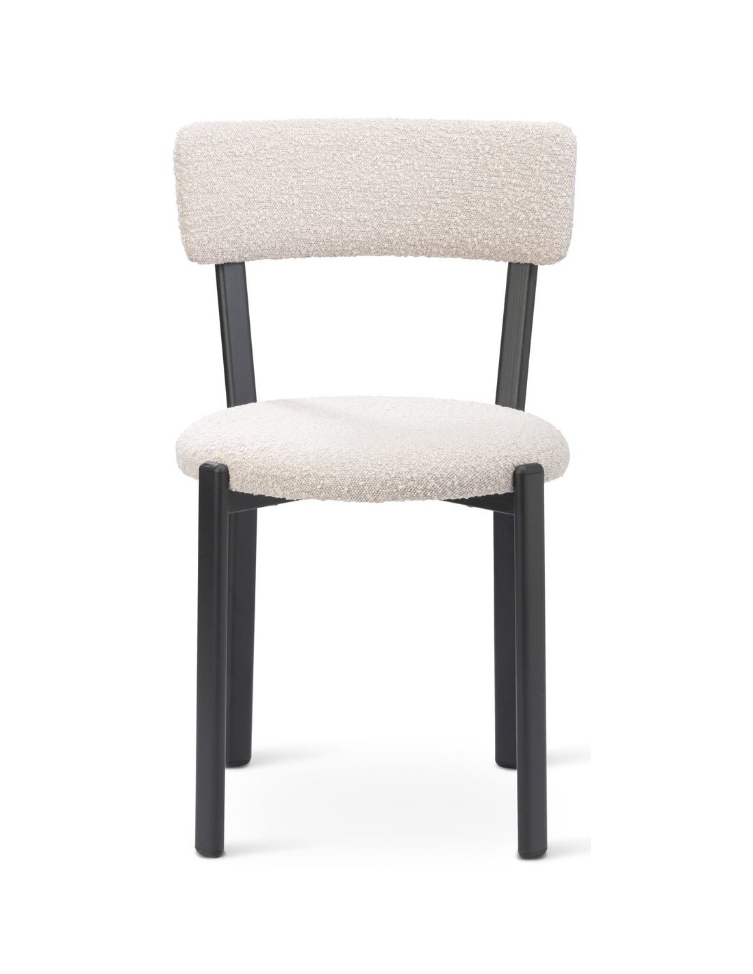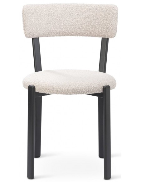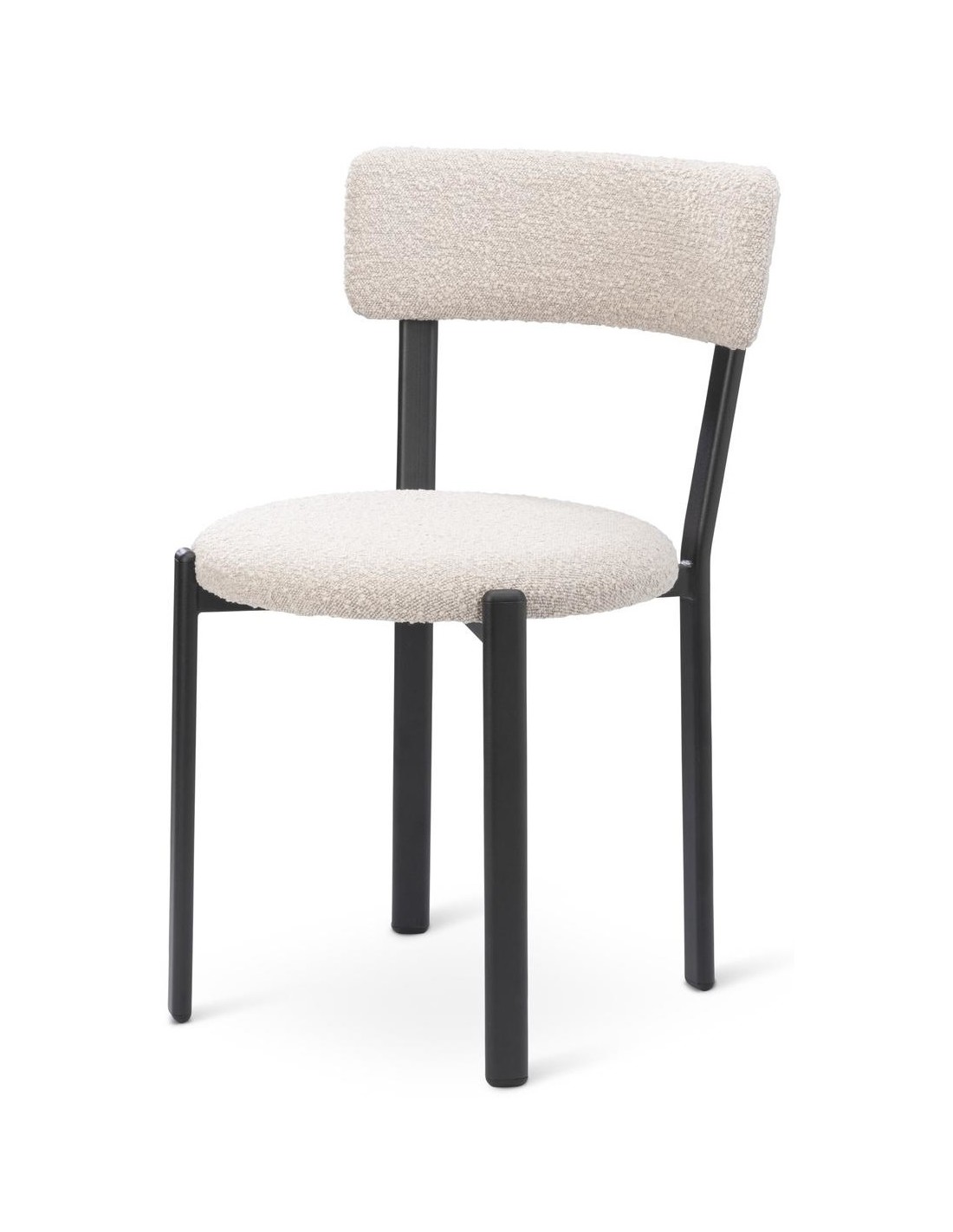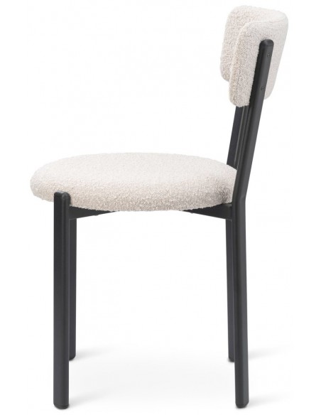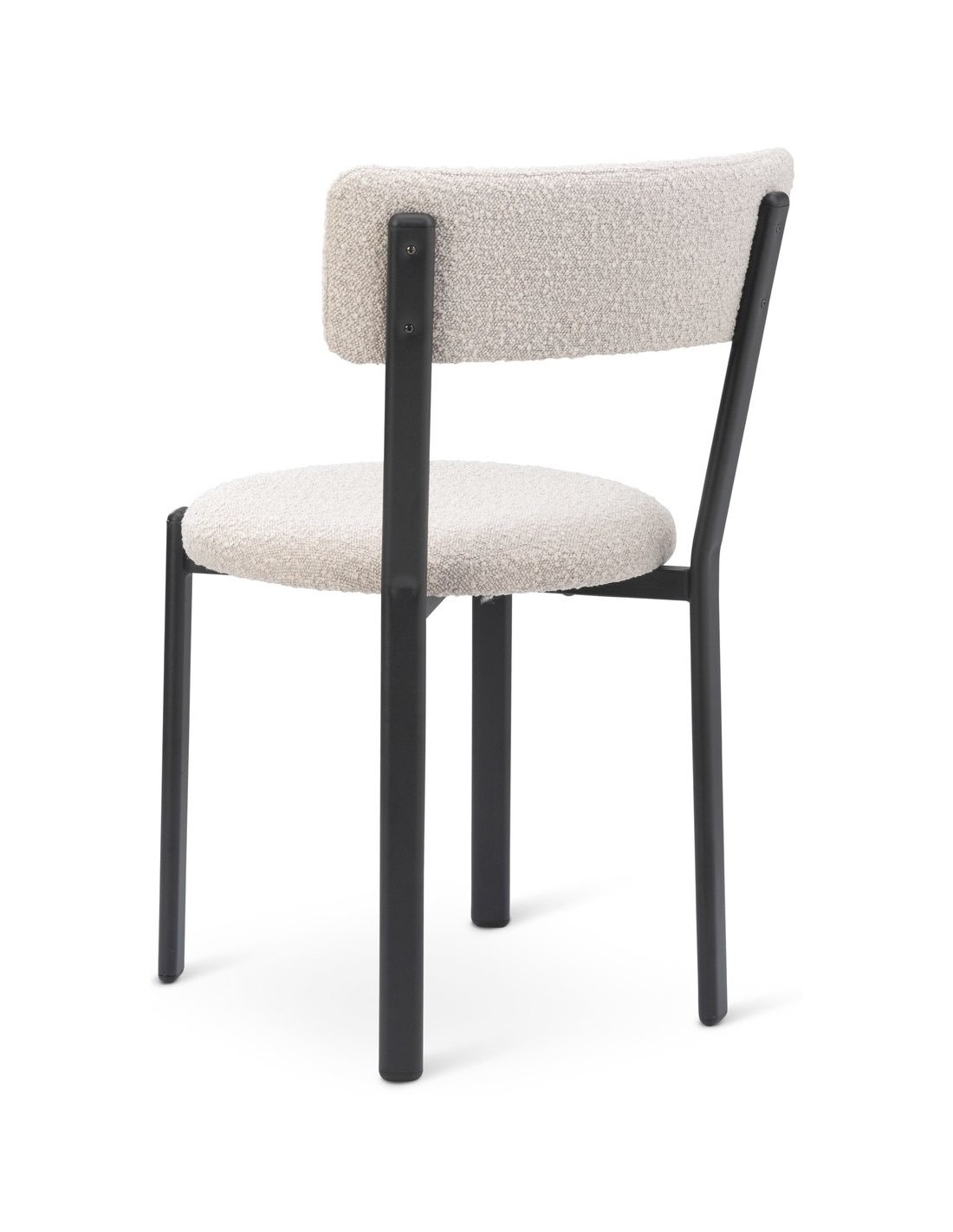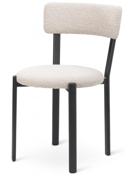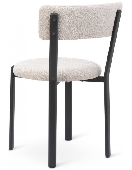 Sæt med 2 spisebordsstole, udført i et moderne design med sæde i beige polyester og ben i sortlakeret metal. Stolen måler 81 cm i højden over ryggen og med siddehøjde på 48 cm.