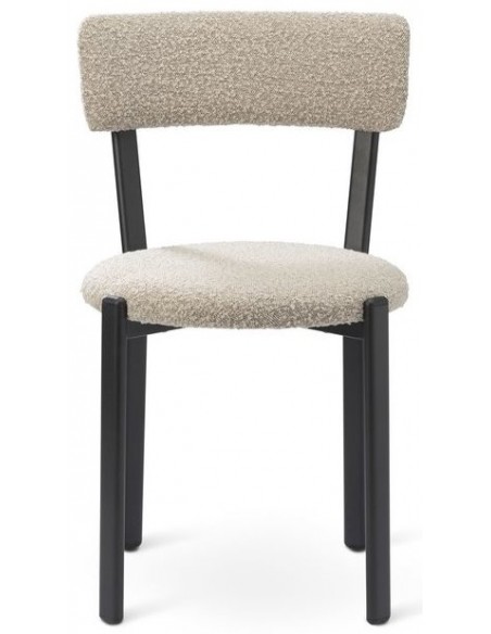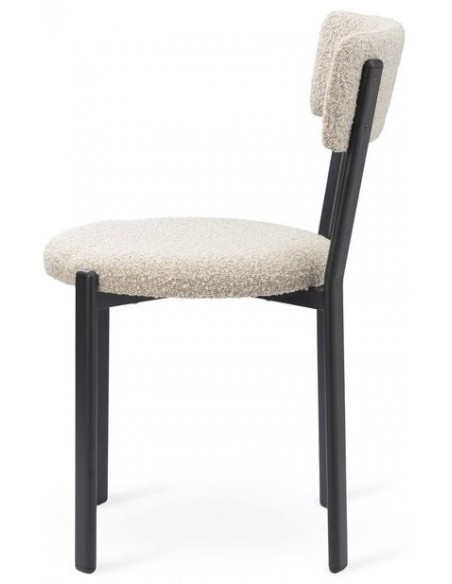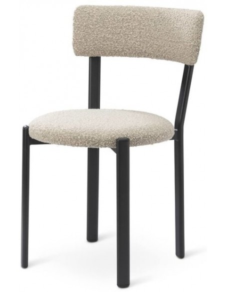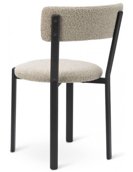Sæt med 2 spisebordsstole, udført i et moderne design med sæde i kamelbrun polyester og ben i sortlakeret metal. Stolen måler 81 cm i højden over ryggen og med siddehøjde på 48 cm.
