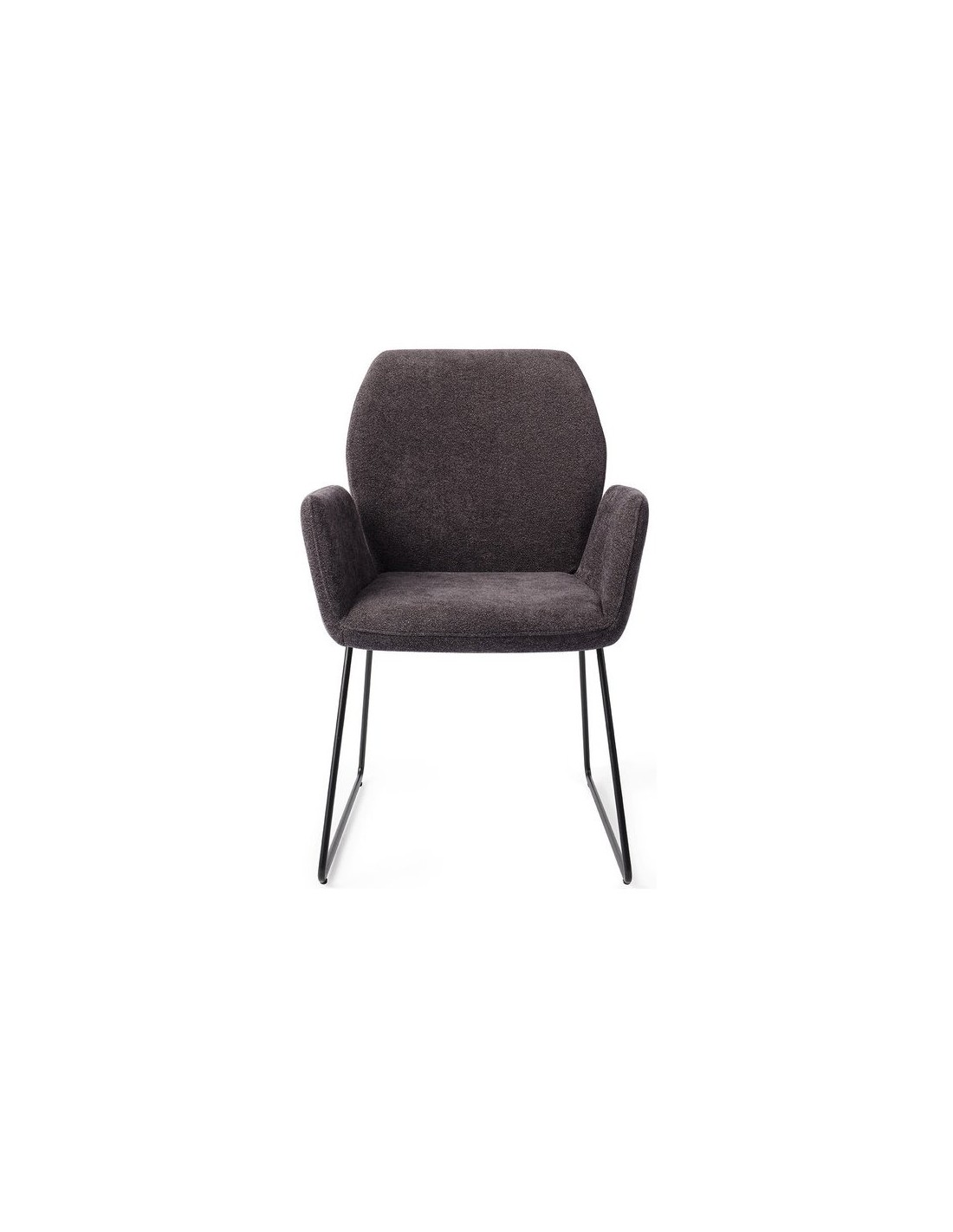 Sæt med 2 Misaki spisebordsstole i et moderne design, fremstillet med sæde i antracitfarvet polyester og stel i sortlakeret metal. Stolen måler 87 cm i højden over ryggen og med siddehøjde på 47,5 cm.