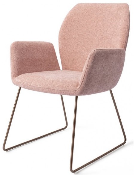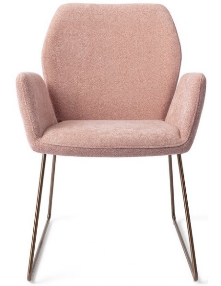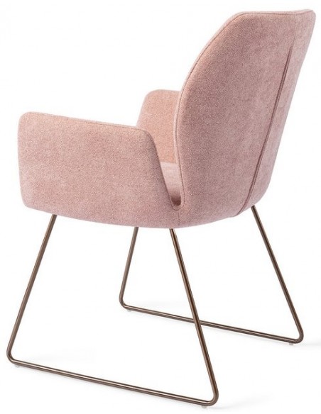 Sæt med 2 Misaki spisebordsstole i et moderne design, fremstillet med sæde i rosa polyester og stel i rødguldfarvet metal. Stolen måler 87 cm i højden over ryggen og med siddehøjde på 47,5 cm.