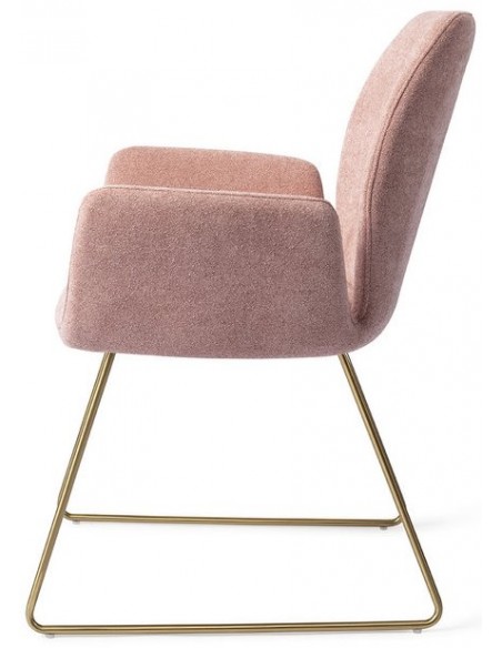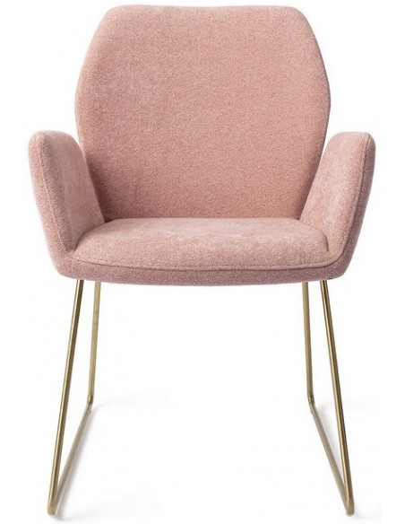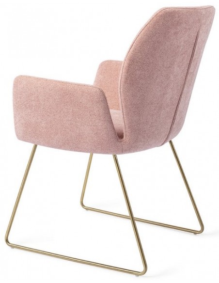 Sæt med 2 Misaki spisebordsstole i et moderne design, fremstillet med sæde i rosa polyester og stel i guldfarvet metal. Stolen måler 87 cm i højden over ryggen og med siddehøjde på 47,5 cm.