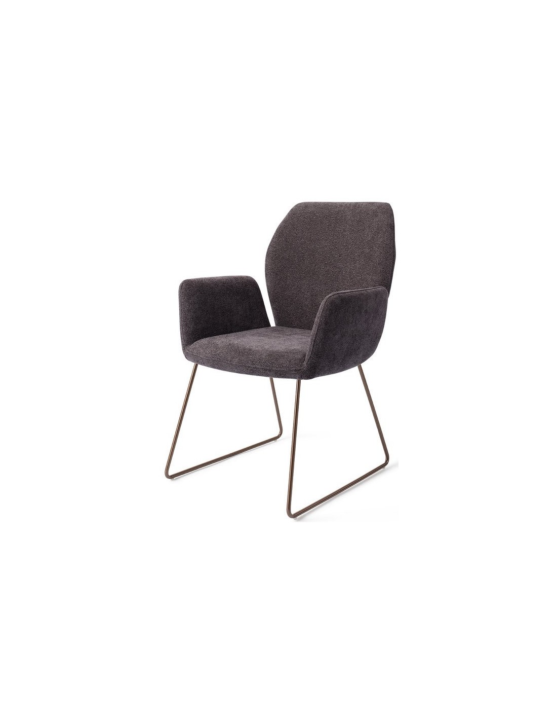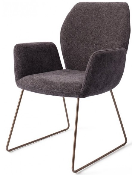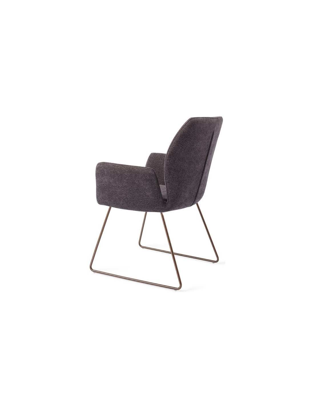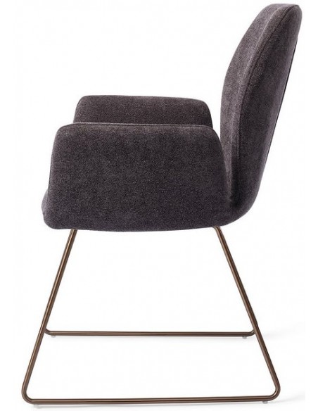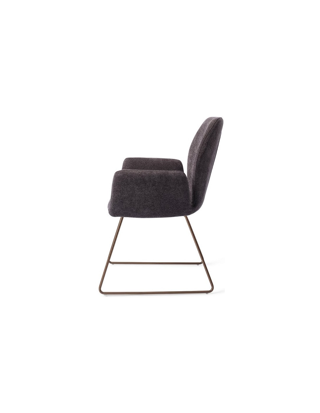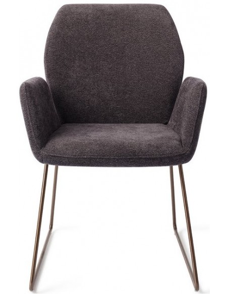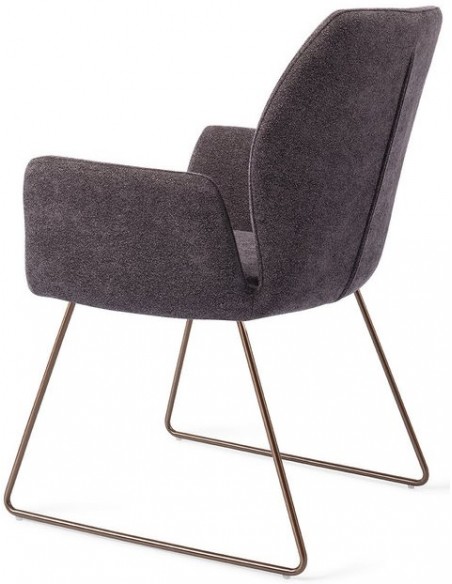 Sæt med 2 Misaki spisebordsstole i et moderne design, fremstillet med sæde i antracitfarvet polyester og stel i rødguldfarvet metal. Stolen måler 87 cm i højden over ryggen og med siddehøjde på 47,5 cm.
